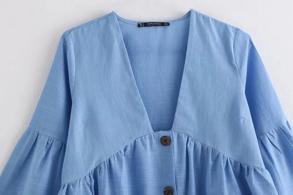 Зима Осень рукав "летучая мышь" женские блузки и рубашки V шеи zora винтажные синие рубашки хлопчатобумажные женские топы и блузки 2019