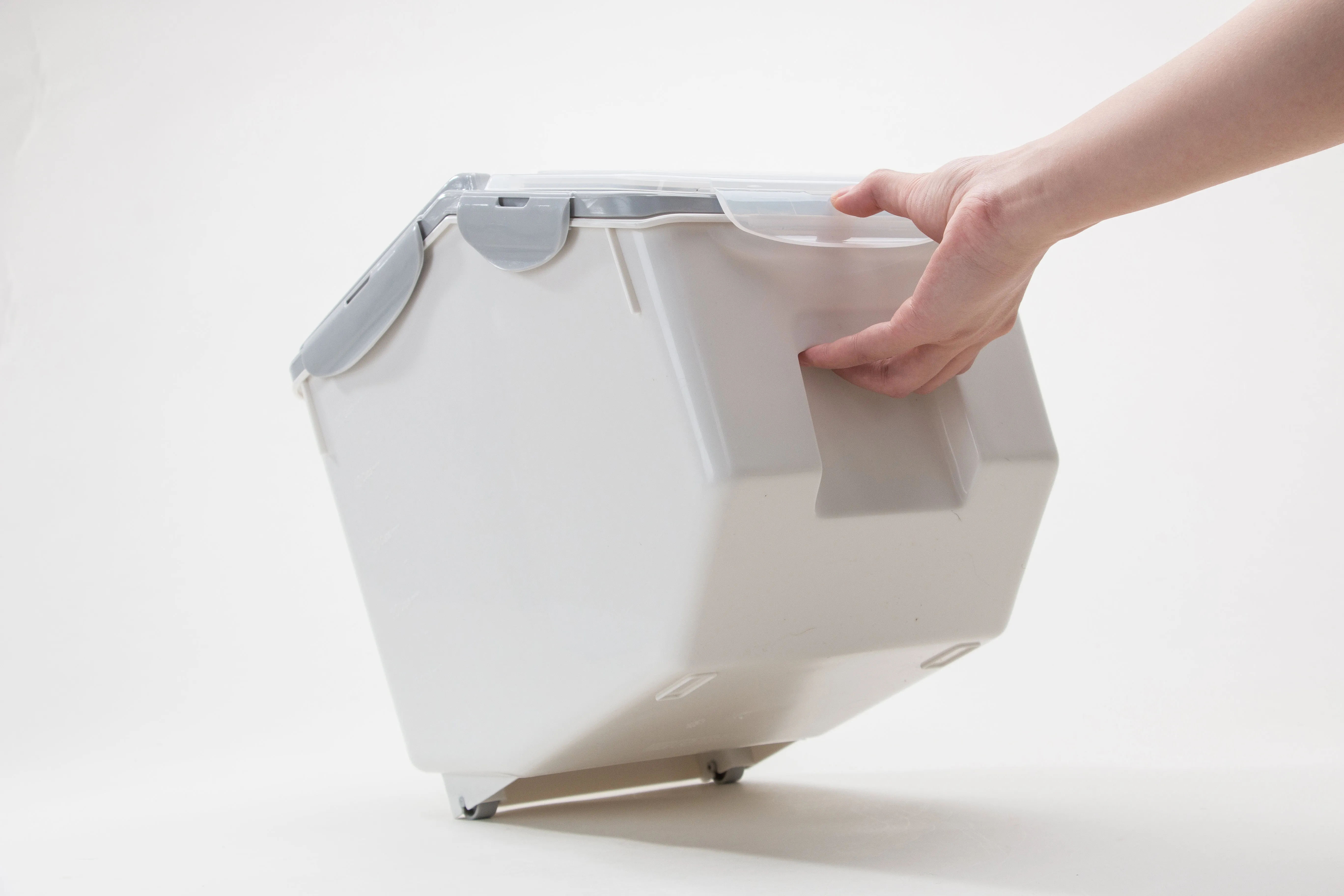 В задней части есть небольшие ролики, которые позволяют мусору легко перемещаться, а откидная крышка достаточно большая, чтобы вы могли совать достаточно еды, чтобы заправить миску в один совок.