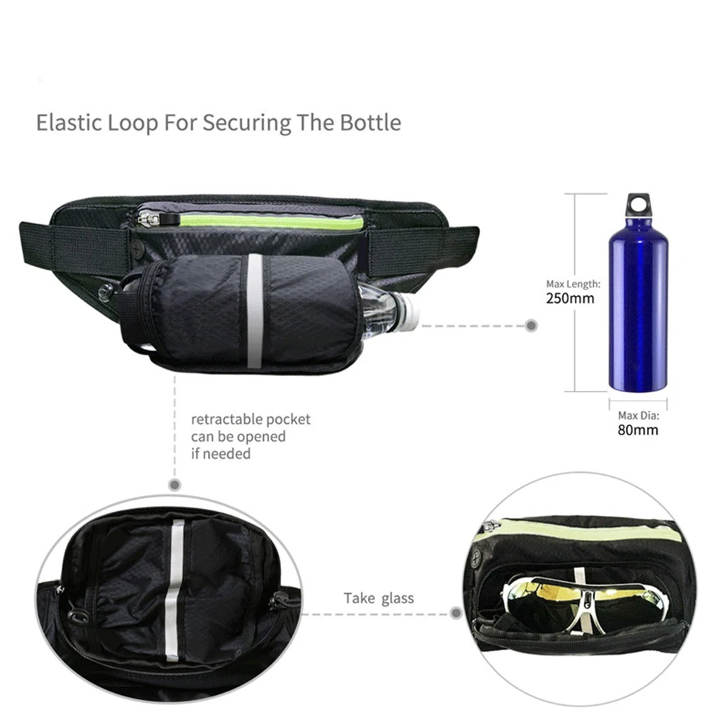Черный походный бег большой емкости водонепроницаемый поясной мешок может держать бутылку воды 6,6 дюймовые смартфоны