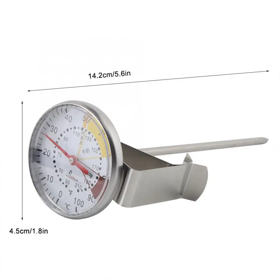 Поможет вам достичь идеальной температуры для горячего молока, кофе, жареного мяса и многого другого. Большой циферблат указателя с четкими весами для удобного чтения. Длинный зонд из нержавеющей стали позволяет достичь более глубокого расположения жидкости, что делает измерение более точным. Конструкция фиксации предотвращает попадание термометра в контейнер при измерении. Особенно подходит для измерения температуры контейнера, заполненного жидкостью.