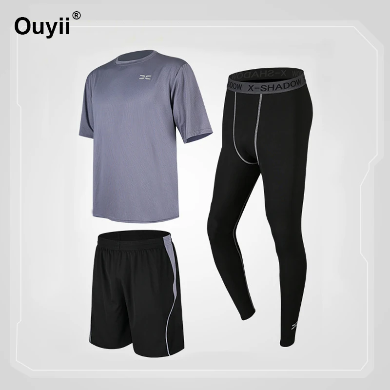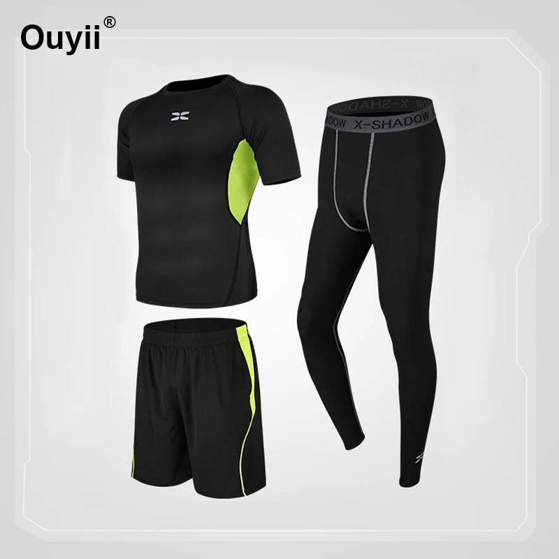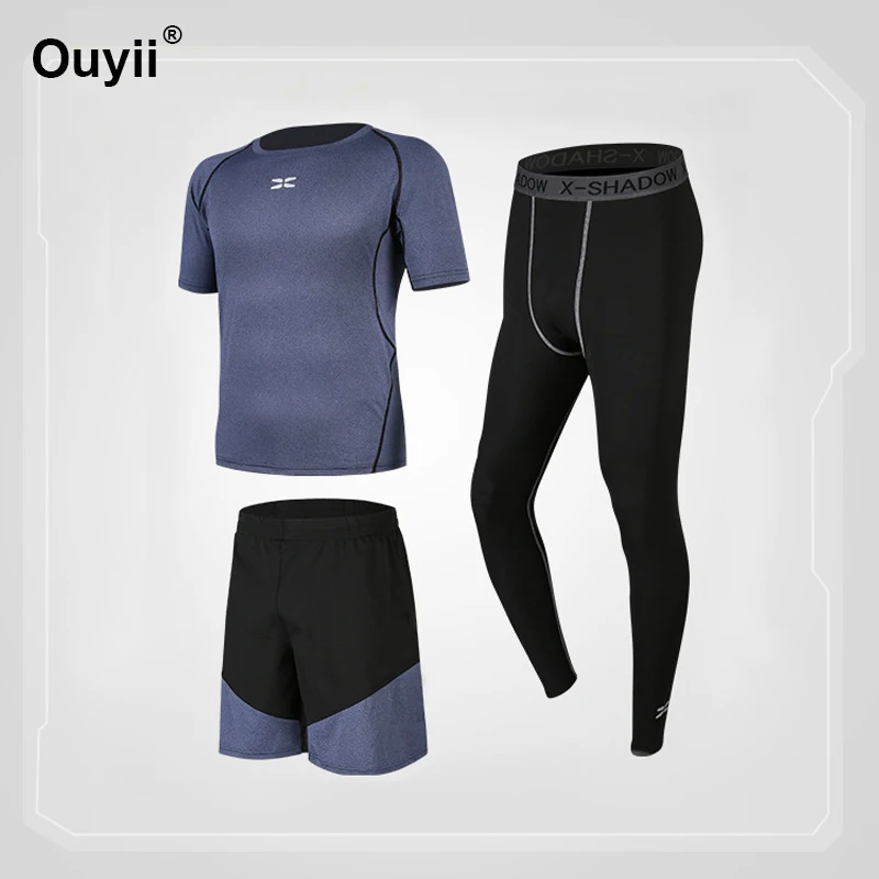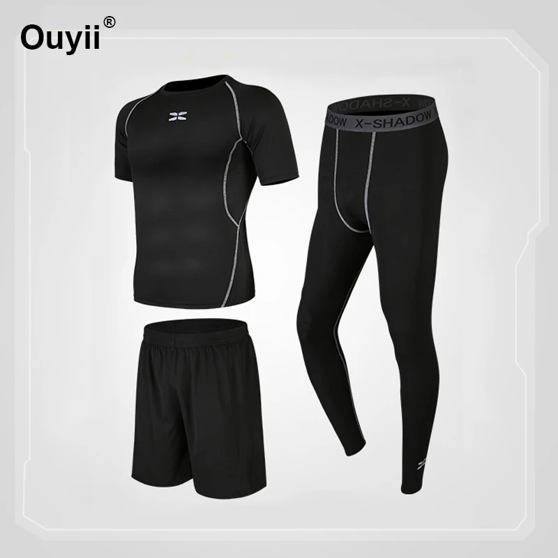 Мужской компрессионный костюм из 3 предметов для тренажерного зала, фитнеса, бега, тренировок, спортивная одежда для бодибилдинга, спортивный костюм, дышащая плотная быстросохнущая одежда