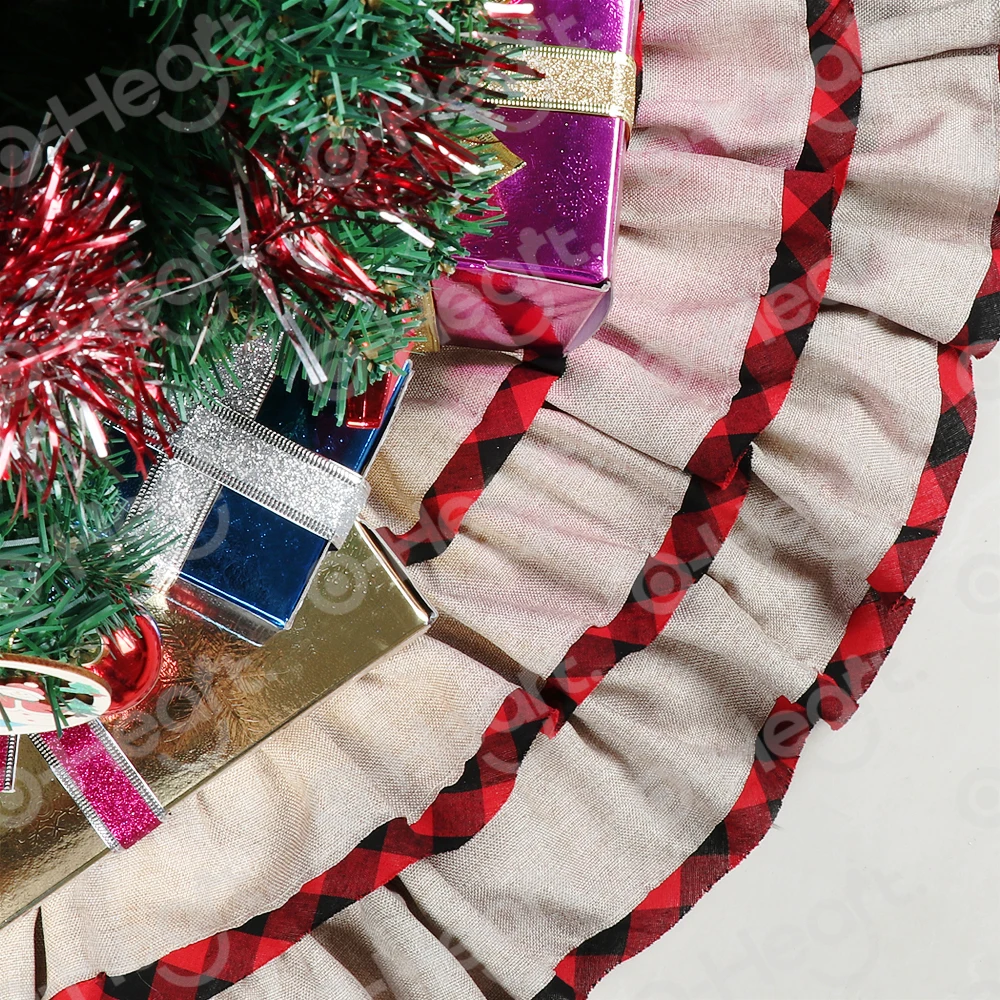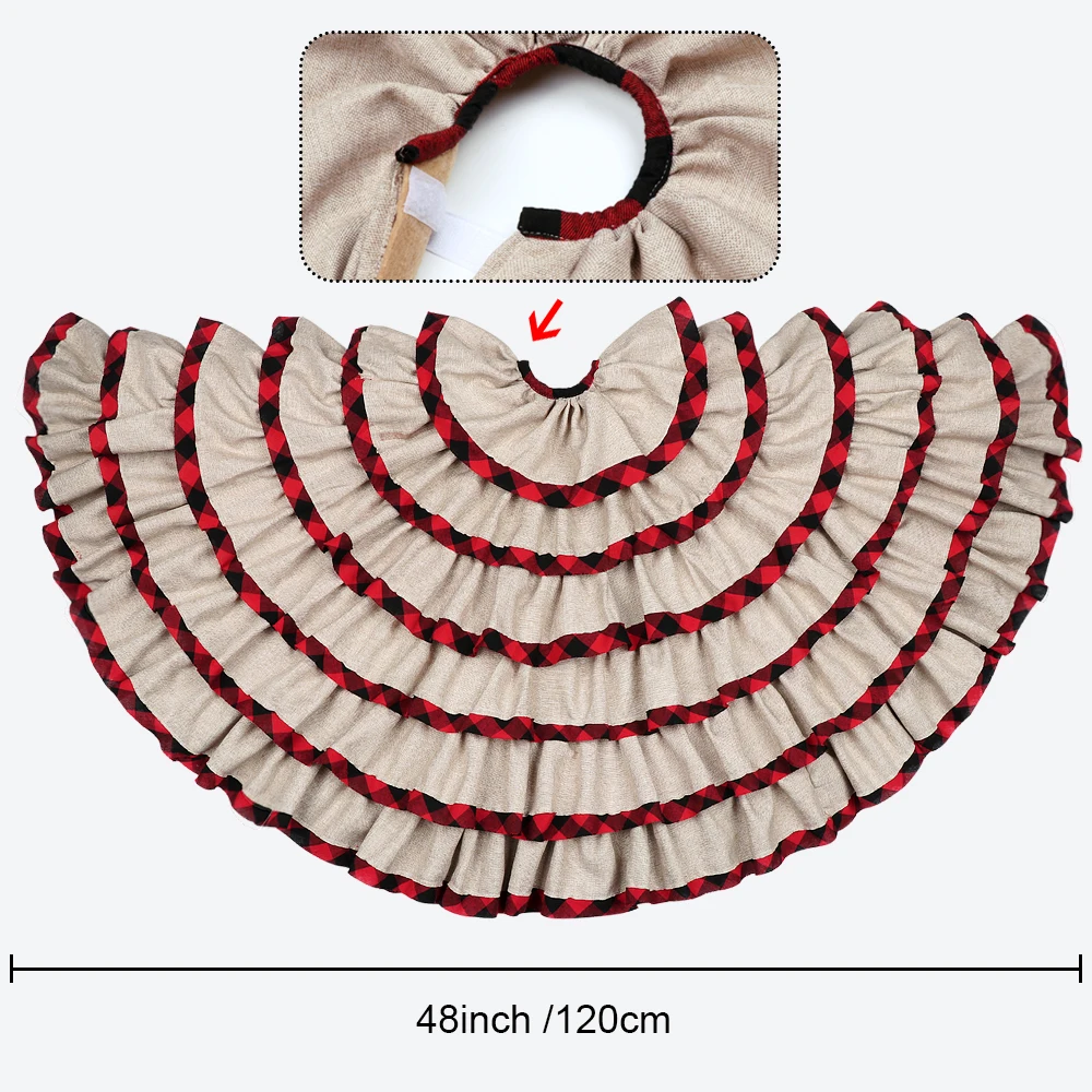 Применение: натуральная Рождественская юбка из мешковины с рюшами в клетку-это юбка с завязками вокруг основания рождественской елки и идеально подходит для деревенского/модного/Народного/кантри/Потертого шика/украшения фермерского дома.
