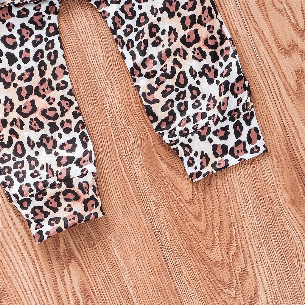 Toddler Baby Girl Long Sleeve Sweatshirt +Leopard Print Pants+Hairband Outfit