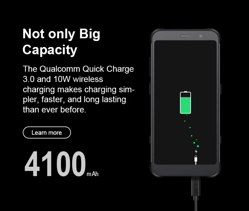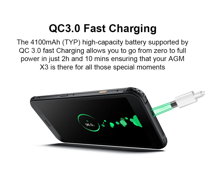 Оснащен аккумулятором высокой емкости 4100 мАч (TYP), поддерживающим проводную быструю зарядку QC3.0, нужно всего 2 часа 10 минут, а затем дать вам полный мобильный телефон, убедитесь, что ваш X3 никогда не пропустит ни единого момента.