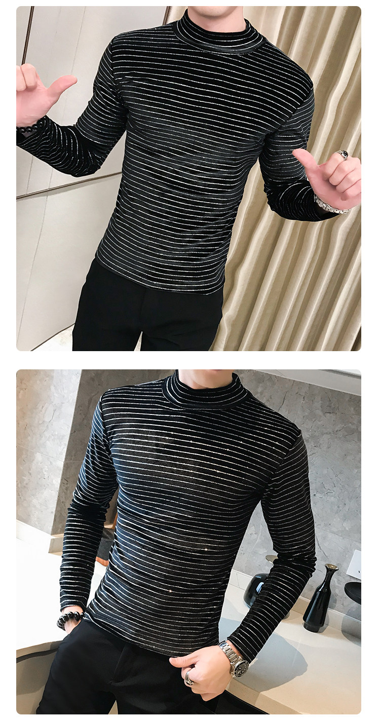 Осенне-зимние новые Полосатые свитера с высоким воротником...