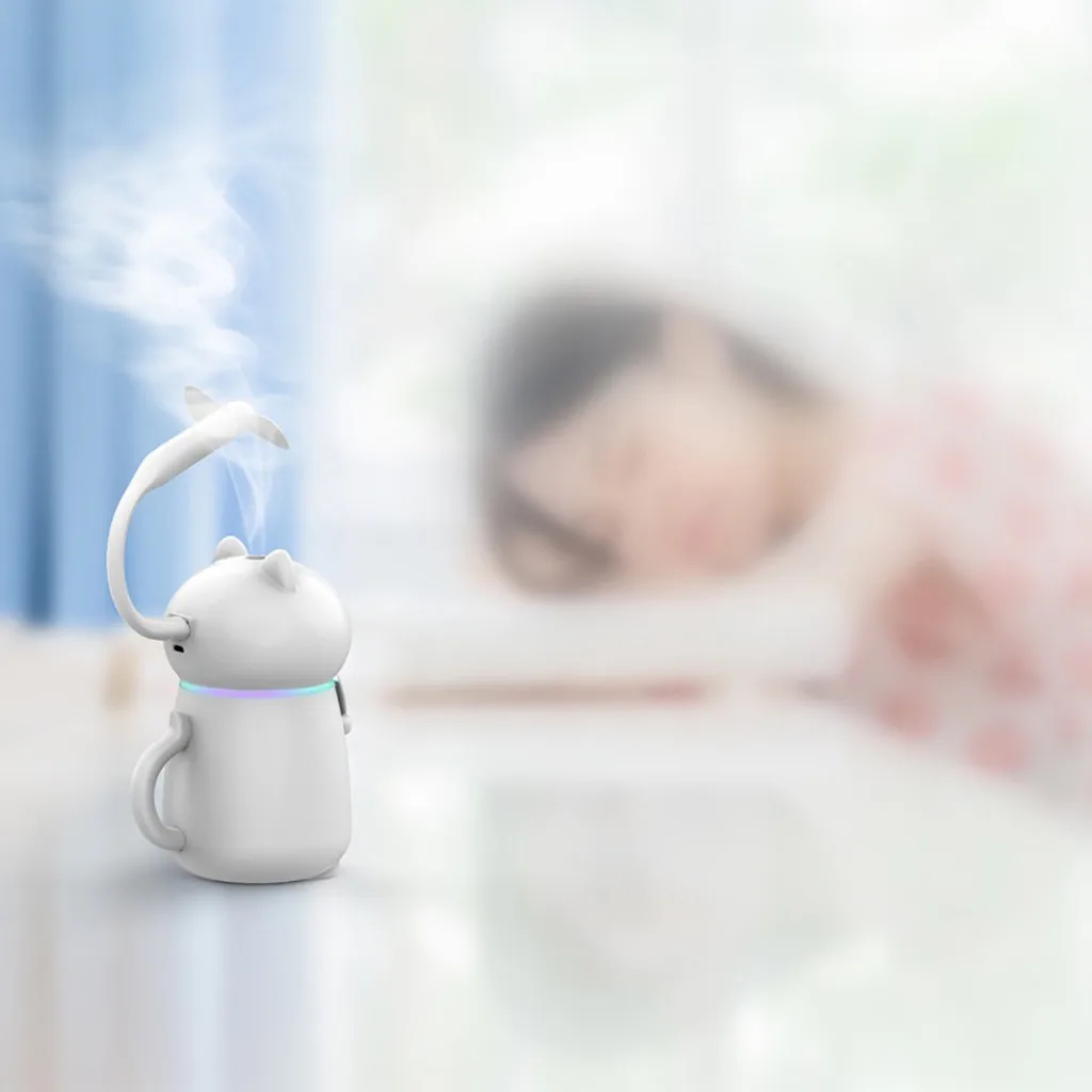 Характеристика: Милый Кот 3 в 1 увлажнитель Светодиодный увлажнитель воздуха вентилятор диффузор очиститель распылитель Материал: АБС-пластик Продукт Размеры: 8,5 см x 10,5 см x 14 см Цвет: белый Повышает влажность воздуха, увлажняет кожу. Очень портативный и простой в использовании. Гаджет для здорового образа жизни, он отлично подходит для вашего дома, офиса и т. д. Емкость бутылки для воды: 180 мл Спрей: 35 мл/ч Продолжительность: 1-я передача 4 часа 2-я передача 8 часов Применимый продукт: детская комната, спальня, туалет, гостиная, комната, офис, автомобиль, на открытом воздухе и так далее Площадь использования: 10-15 кв. М Примечание: Этот продукт является увлажнителем, материал и структура не подходят для аромата, если добавляется эфирное масло, может повредить срок службы продукта. Увлажнитель воды лучше всего использовать водопроводную воду, потому что дистиллированная вода после испарения, чистая вода после извлечения, изменяет оригинальное качество воды Посылка: 1 шт. увлажнитель воздуха 1 шт. USB кабель