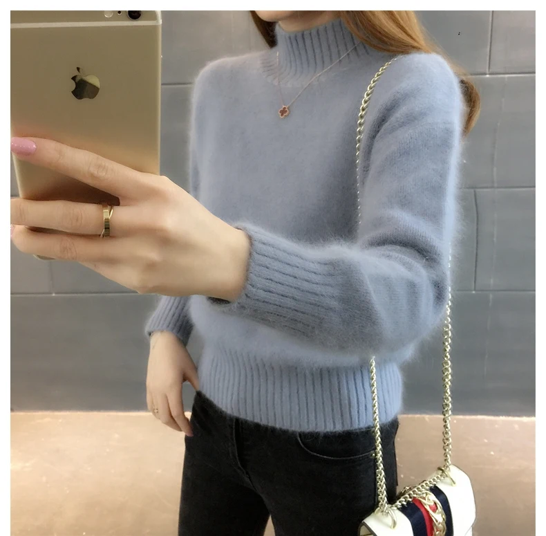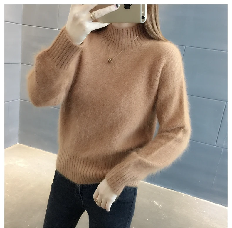 Новый вязаный свитер, женские джемперы, Одноцветный свитер, Женский пуловер, свитера, Корейская женская мода, Зимние Теплые Топы, OK344
