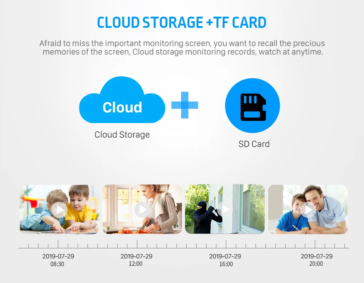 ●Боясь пропустить важный экран мониторинга, вы хотите вспомнить драгоценные воспоминания о экране, записи мониторинга облачного хранилища, смотреть в любое время.