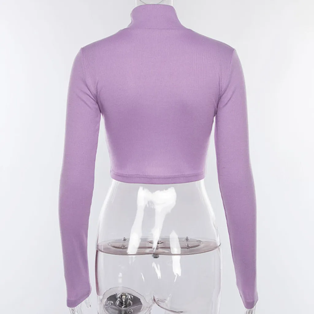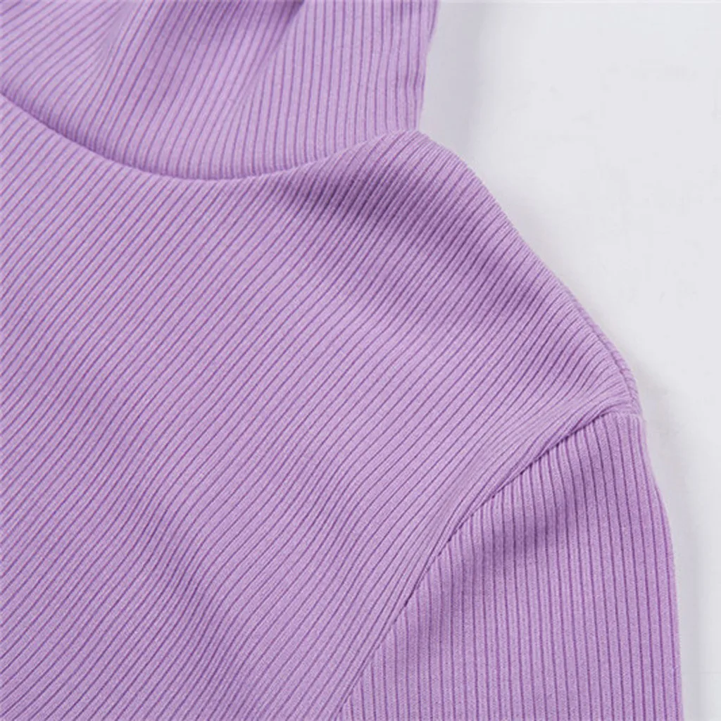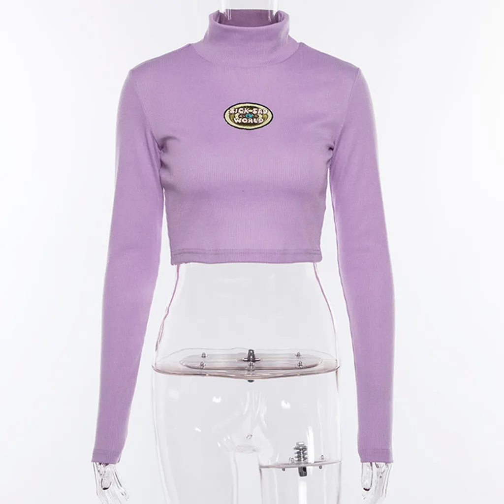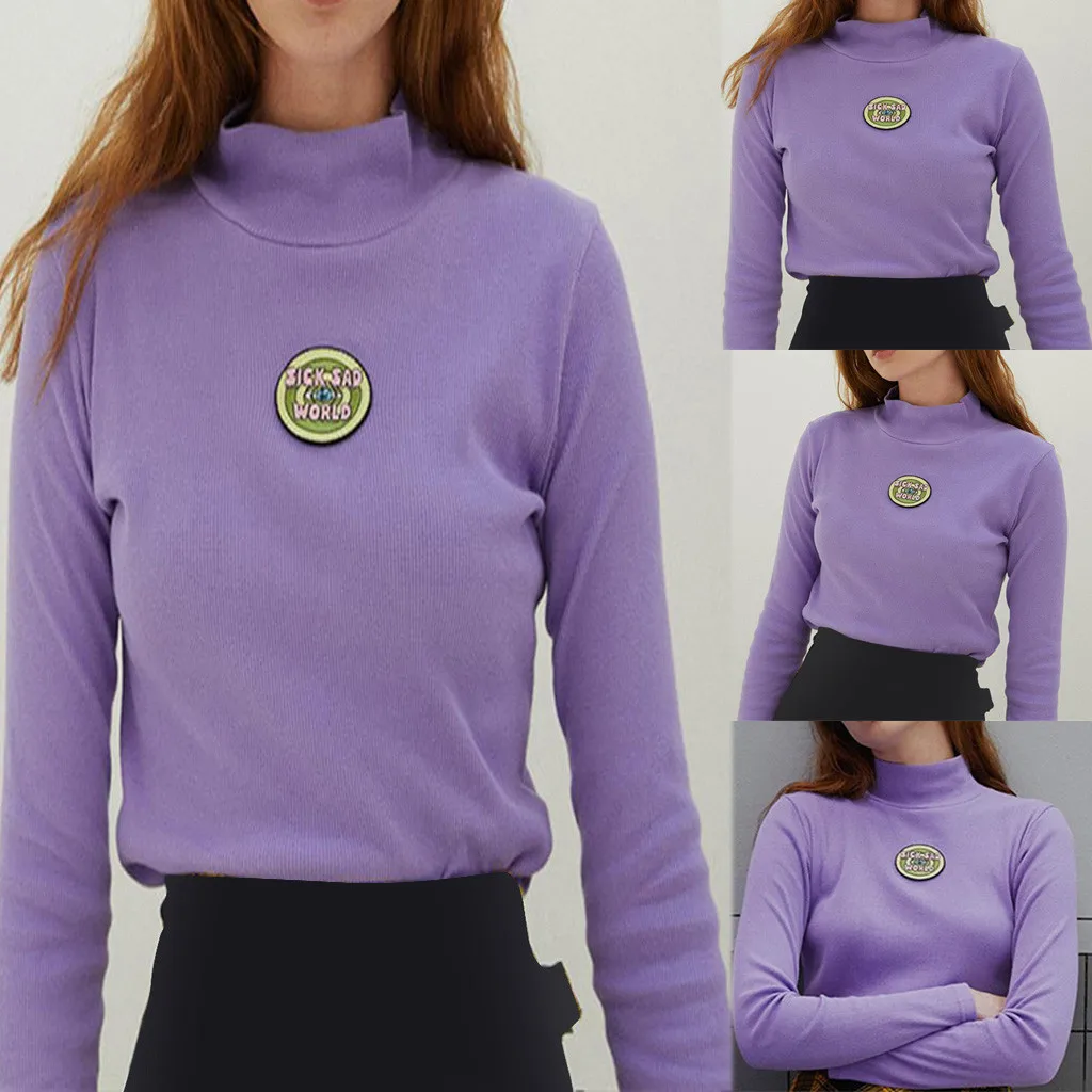 Женская водолазка с длинным рукавом и вышивкой в виде букв, осенняя фиолетовая модная короткая футболка