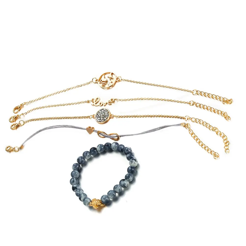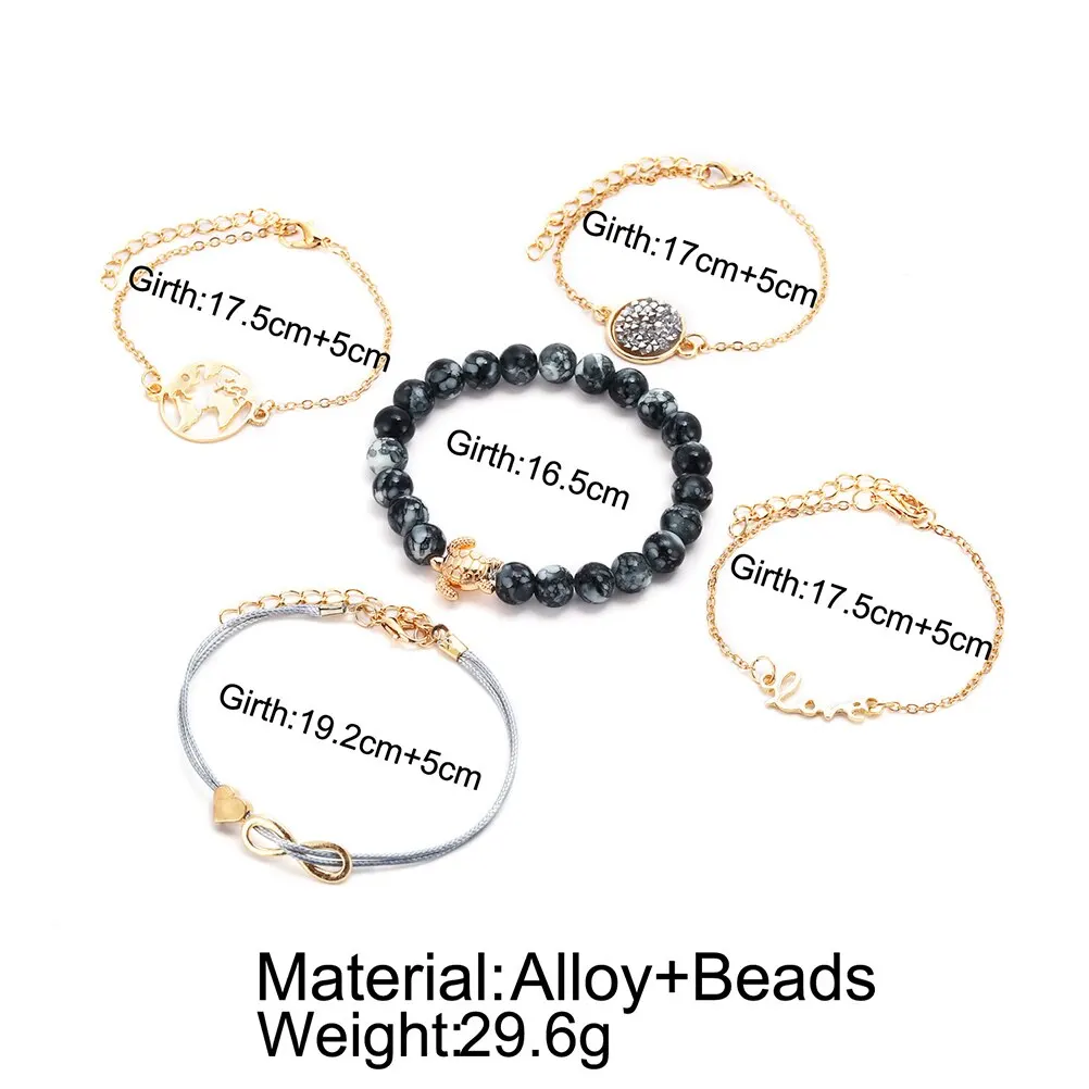 5 шт. Алмазный Карта Мира сплав браслет сердце черепаха модный браслет Амулет браслет на цепи для девочек женщин
