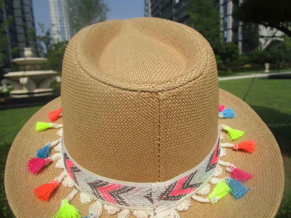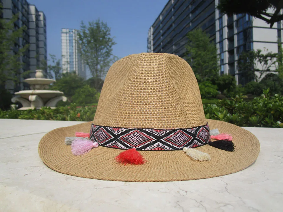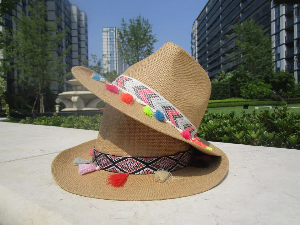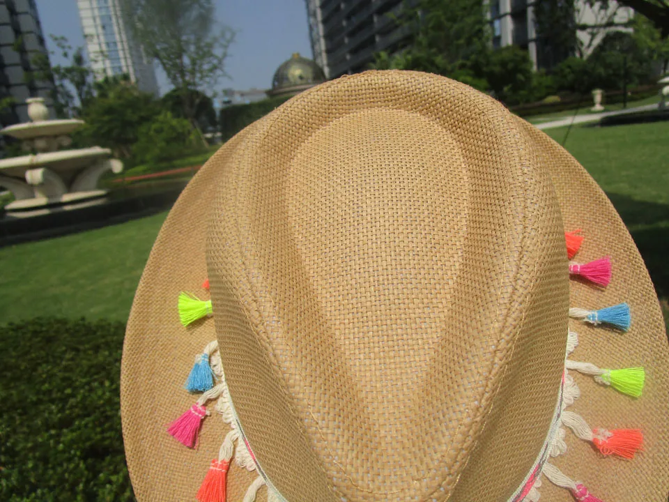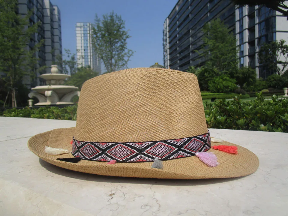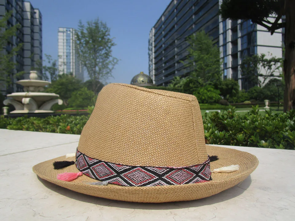Продукт Особенности: Тип: шапки и кепки 100% абсолютно новые и высококачественные Стиль: Мода Материал: соломенная шляпа Цвет: как показано на картинке. Размер: 57-59 см (окружность шляпы ок.) (1 см = 0,39 дюйма) Посылка включает в себя: шляпа-1 шт.