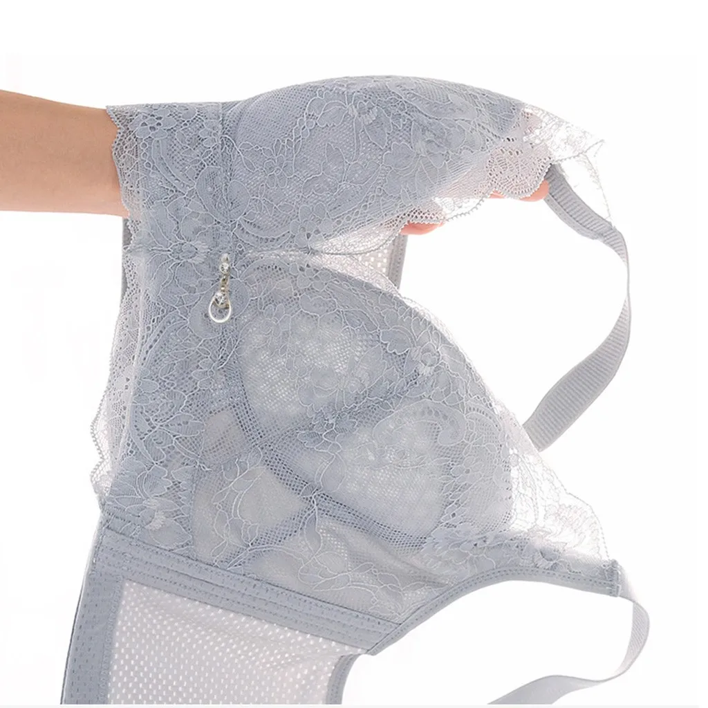 Женский формирующий полный охват уменьшающий бюстгальтер ультра-тонкий сексуальный кружевной беспроводной бюстгальтер
