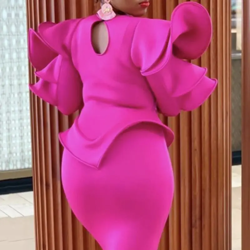 Желтый Falbala сексуальное длинное женское платье размера плюс элегантные 2019 дамы с длинным рукавом "Русалка" Вечеринка сексуальное платье