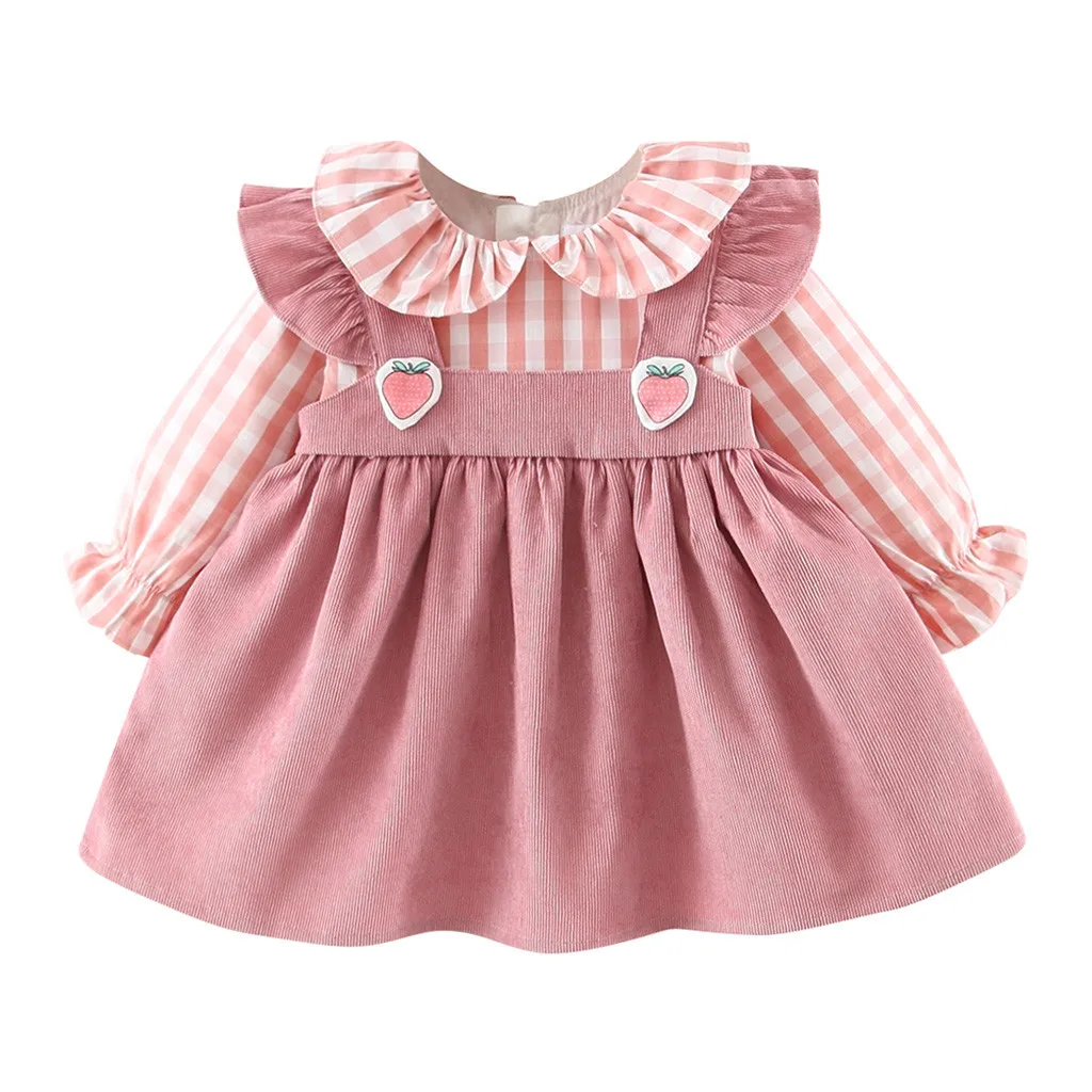 Повседневное платье в клетку для маленьких девочек с оборками и рисунком клубники; Одежда в стиле пэчворк