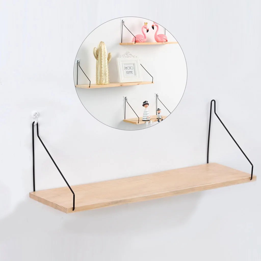 Хорошо продуманные Металлические Проволочные скобы идеально и легко крепятся к деревянной полке. На каждой стороне доски есть несколько предварительно просверленных отверстий для кронштейнов, и вы можете найти инструкцию о том, как настроить его на изображении.1 * стеллаж для выставки товаров