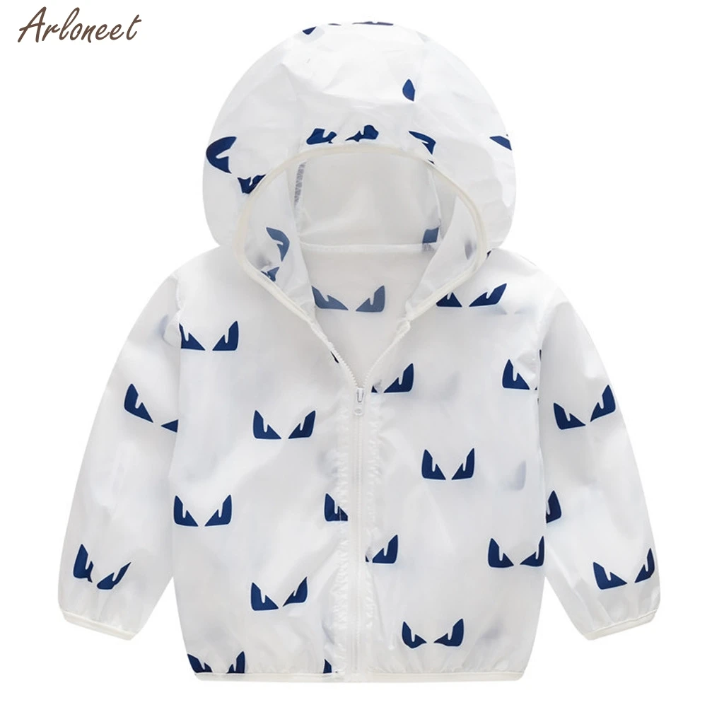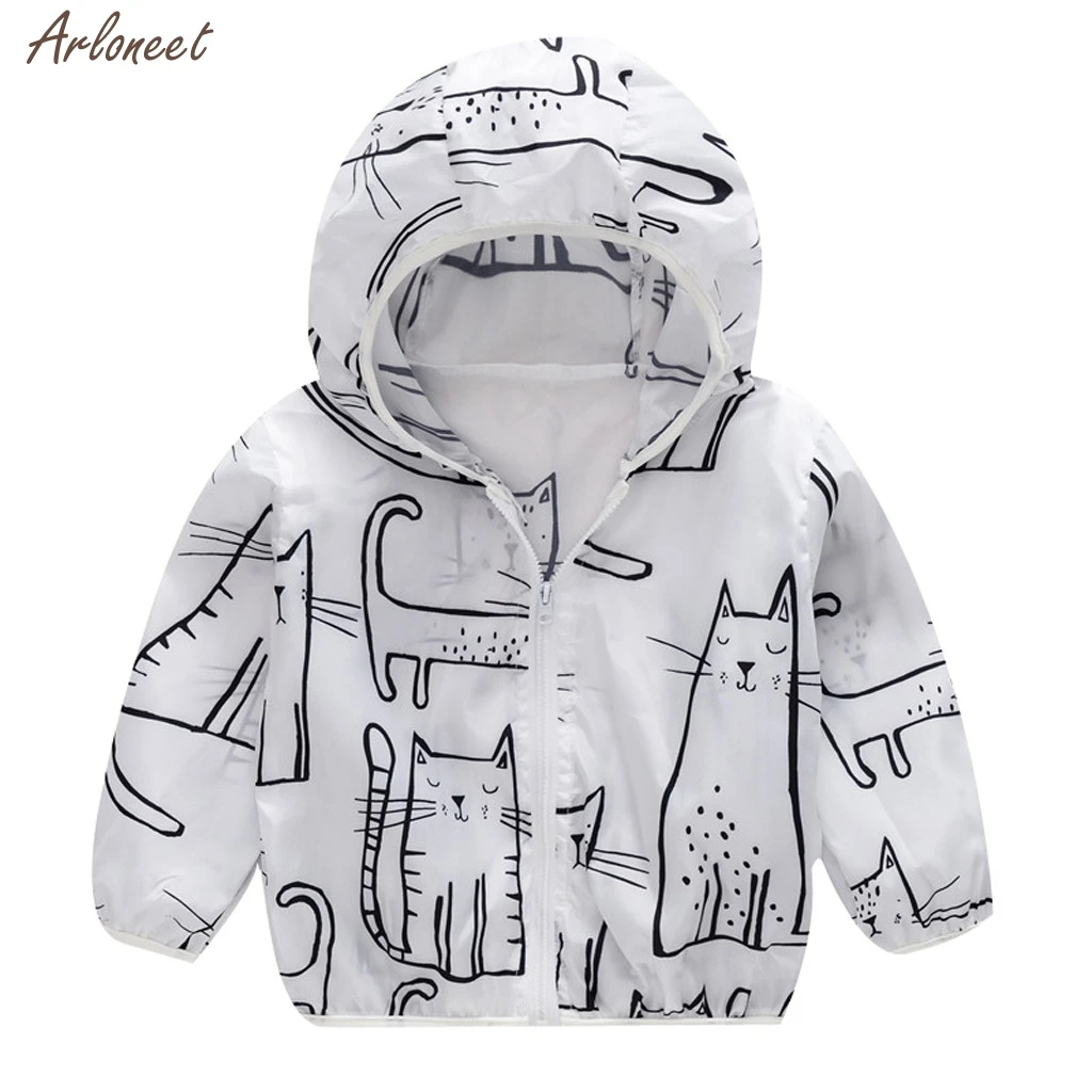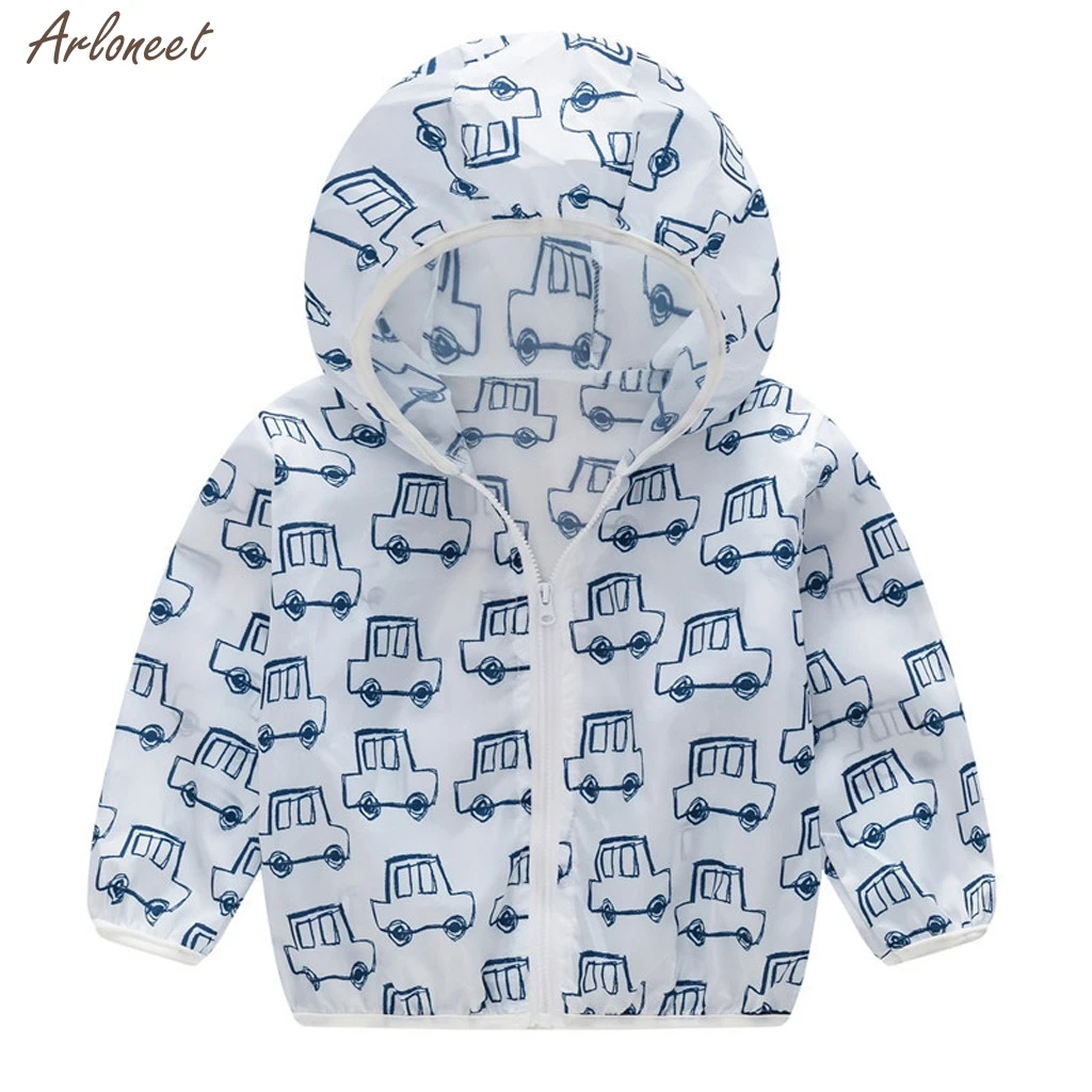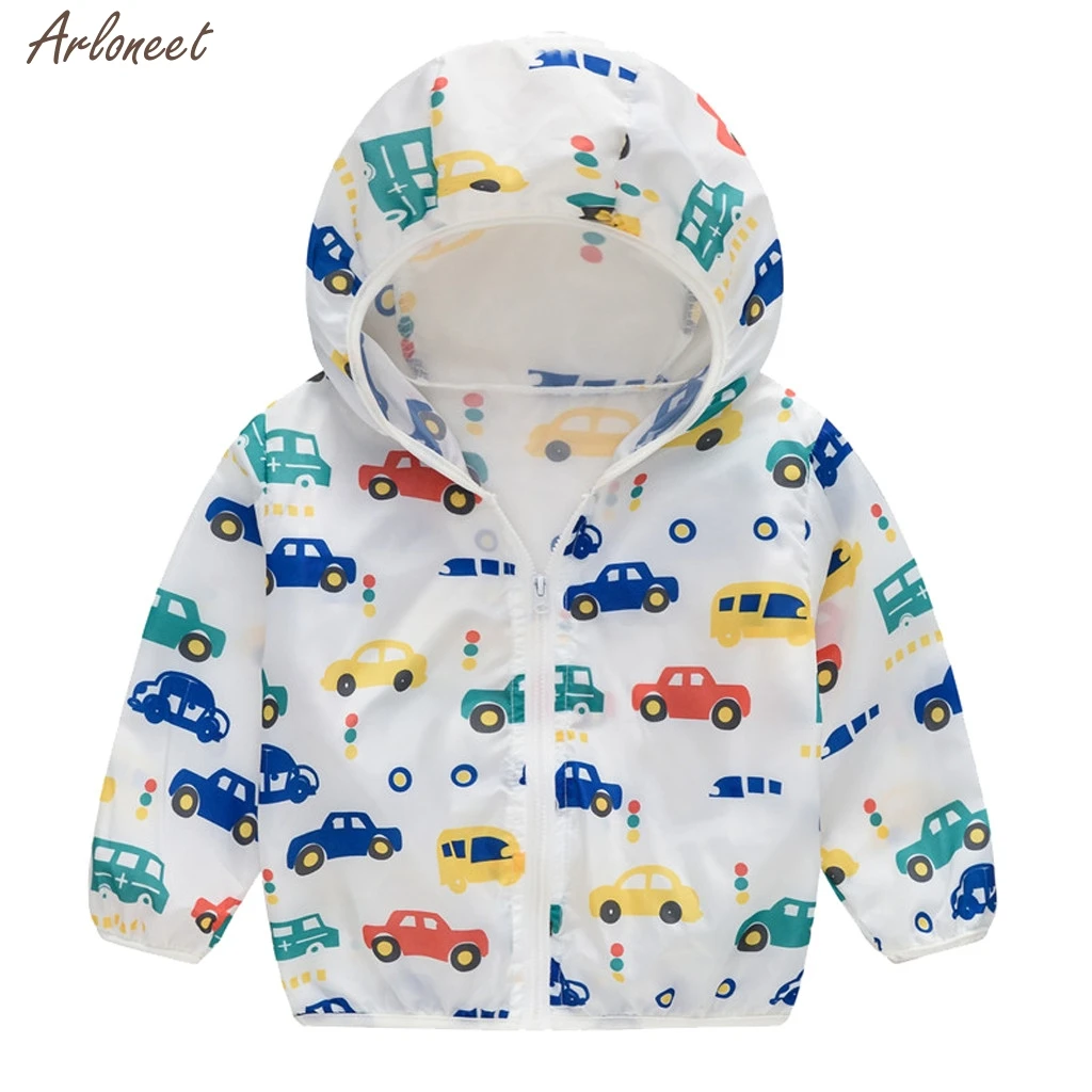Летние солнцезащитные куртки для детей ясельного возраста верхняя одежда с капюшоном и принтом пальто на молнии