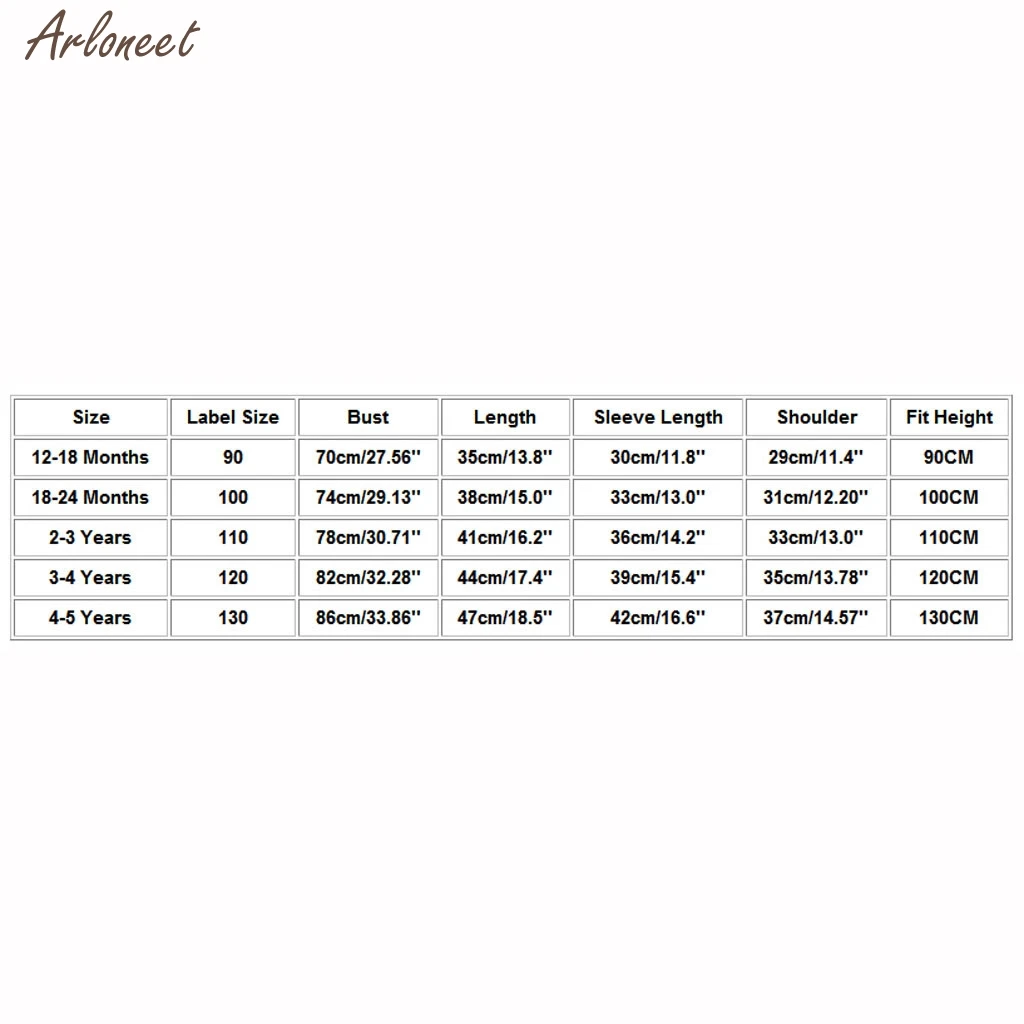 Размер: 12-18 месяцевРазмер этикетки: 90Обхват груди: 70 см/27,56 дюймаДлина: 35 см/13,8''Длина рукава: 30 см/11,8 дюймаПлечо: 29 см/11,4''Высота посадки: 90 смРазмер: 18-24 месяцевРазмер этикетки: 100Обхват груди: 74 см/29,13 дюймаДлина: 38 см/15,0 дюймаДлина рукава: 33 см/13,0 дюймаПлечо: 31 см/12,20''Высота посадки: 100 смРазмер: От 2 до 3 летРазмер этикетки: 110Обхват груди: 78 см/30,71 дюймаДлина: 41 см/16,2''Длина рукава: 36 см/14,2 дюймаПлечо: 33 см/13,0 дюймаРост: 110 смРазмер: От 3 до 4 летРазмер этикетки: 120Обхват груди: 82 см/32,28 дюймаДлина: 44 см/17,4''Длина рукава: 39 см/15,4 дюймаШирина плеч: 35 см/13,78 дюймаВысота посадки: 120 смРазмер: От 4 до 5 летРазмер этикетки: 130Обхват груди: 86 см/33,86 дюймаДлина: 47 см/18,5 дюймаДлина рукава: 42 см/16,6 дюймаШирина плеч: 37 см/14,57 дюймаВысота посадки: 130 см