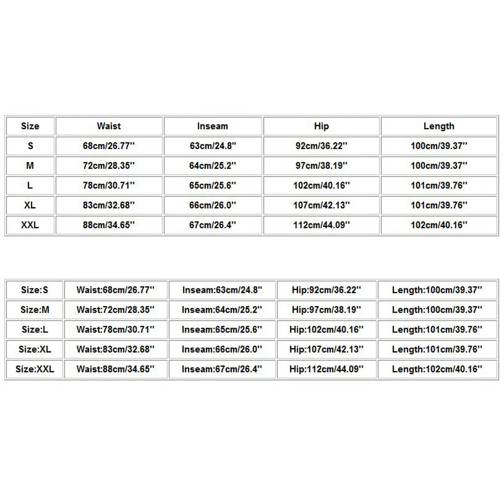 Размеры: SТалия: 68 см/26,77''Длина: 63 см/24,8 дюймаБедра: 92 см/36,22''Длина: 100 см/39,37''Размеры: МТалия: 72 см/28,35''Внутренний шов: 64 см/25,2''Бедра: 97 см/38,19''Длина: 100 см/39,37''Размеры: LТалия: 78 см/30,71''Внутренний шов: 65 см/25,6''Бедра: 102 см/40,16''Длина: 101 см/39,76''Размеры: XLТалия: 83 см/32,68''Внутренний шов: 66 см/26,0''Бедра: 107 см/42,13''Длина: 101 см/39,76''Размеры: XXLТалия: 88 см/34,65''Внутренний шов: 67 см/26,4''Бедра: 112 см/44,09''Длина: 102 см/40,16''