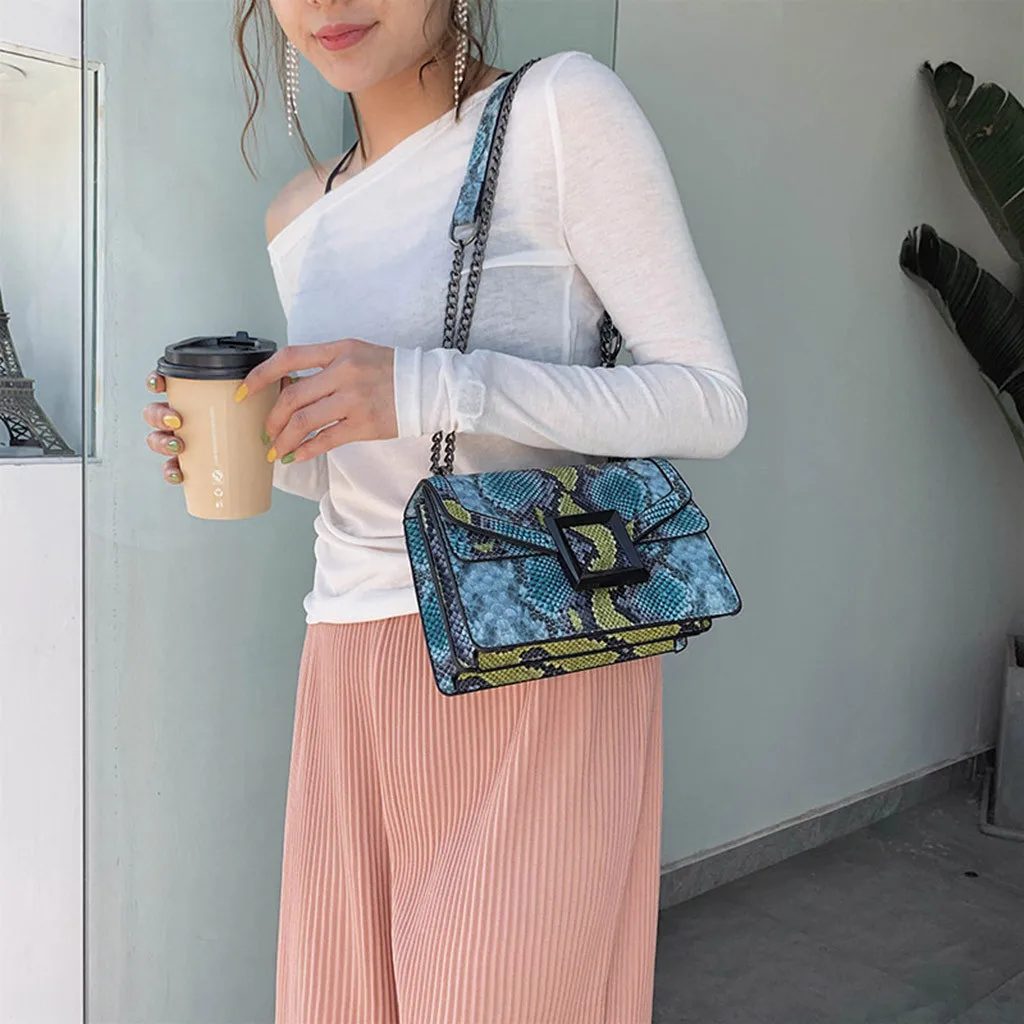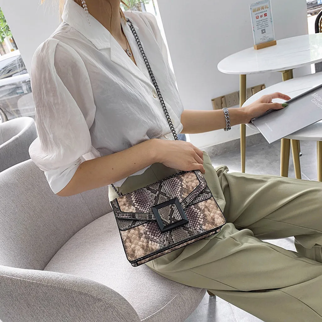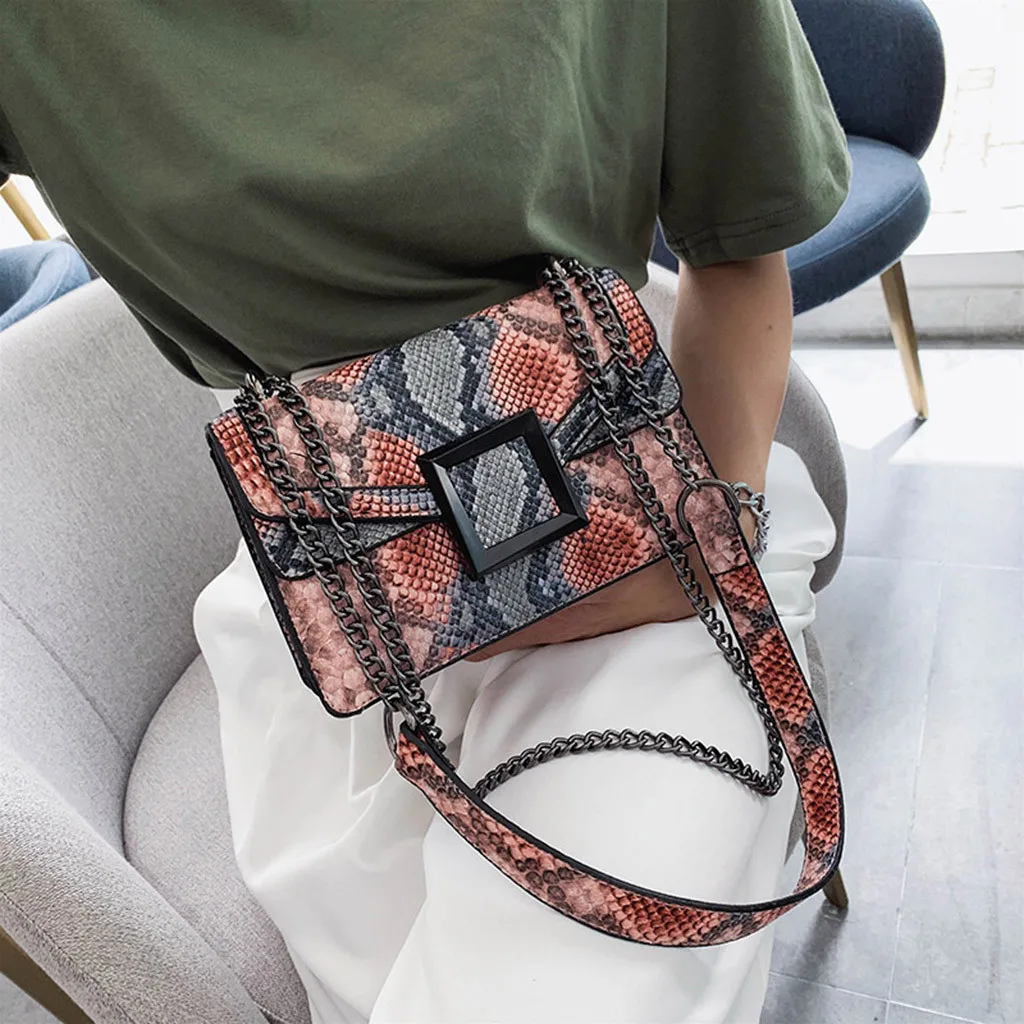 Женская сумка со змеиным принтом, сумка через плечо в винтажном стиле, женская сумка через плечо