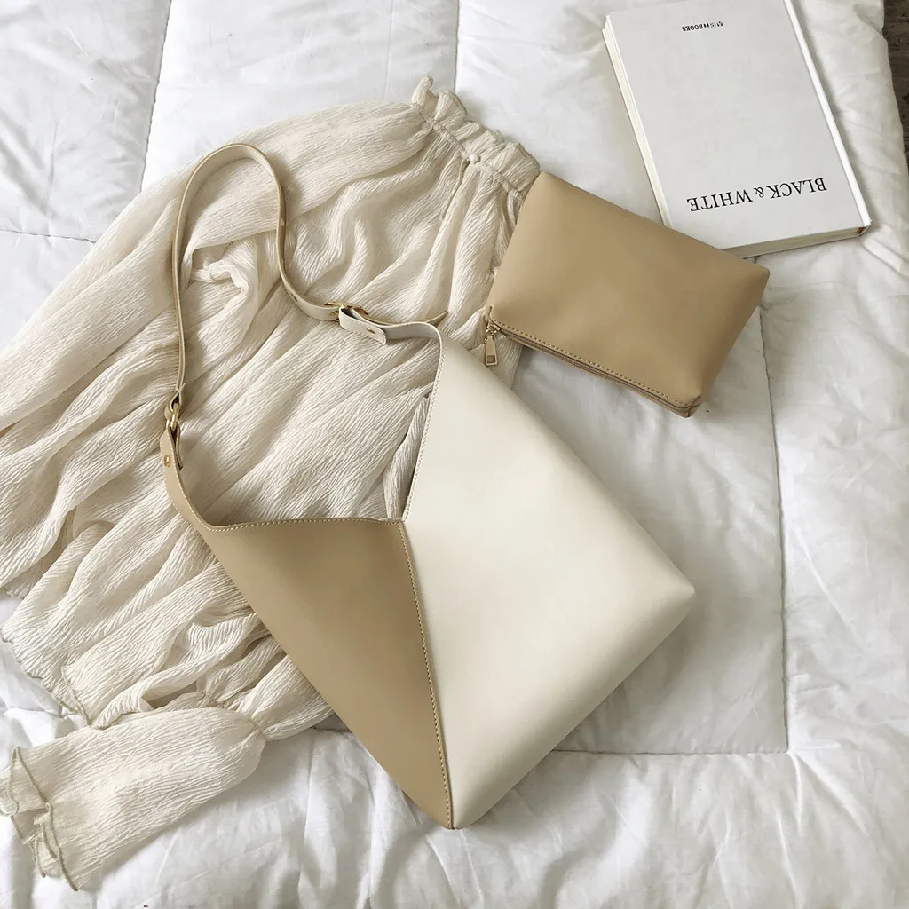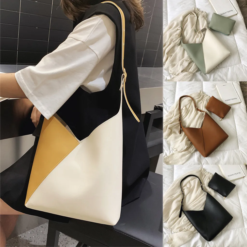 2 шт., Женская Ретро сумка-мессенджер, двойной цвет, Лоскутная Кожа, сумка через плечо, кошельки