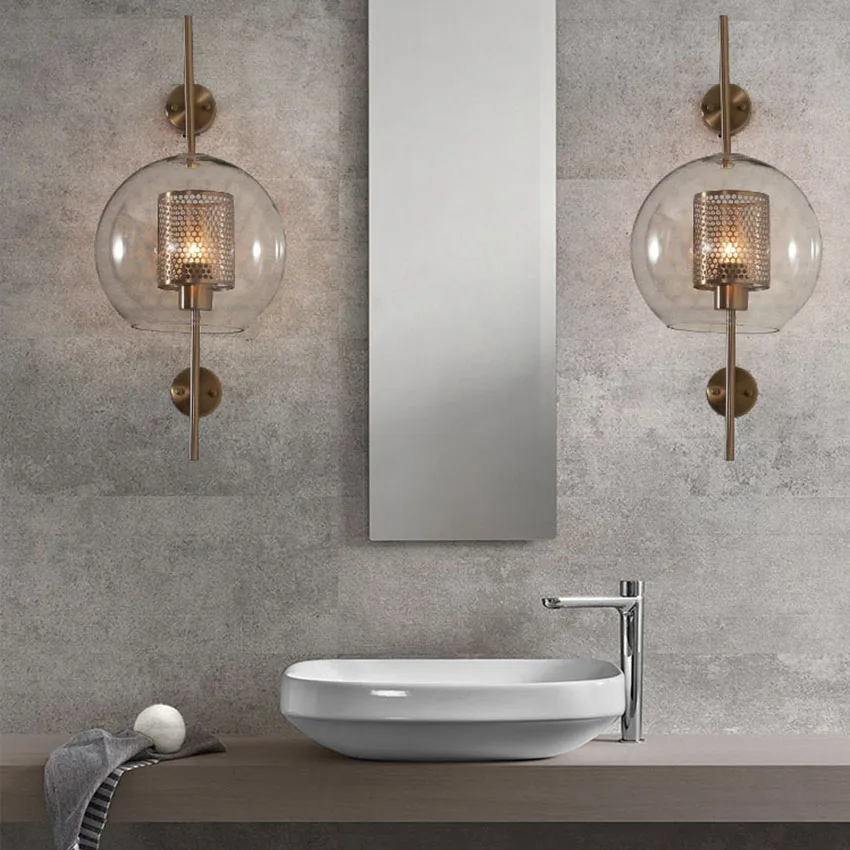 Промышленный стиль гостиной настенный светильник 20 см 25 см прозрачный стеклянный абажур Ретро креативный Лофт настенный светильник для прохода лестницы спальни