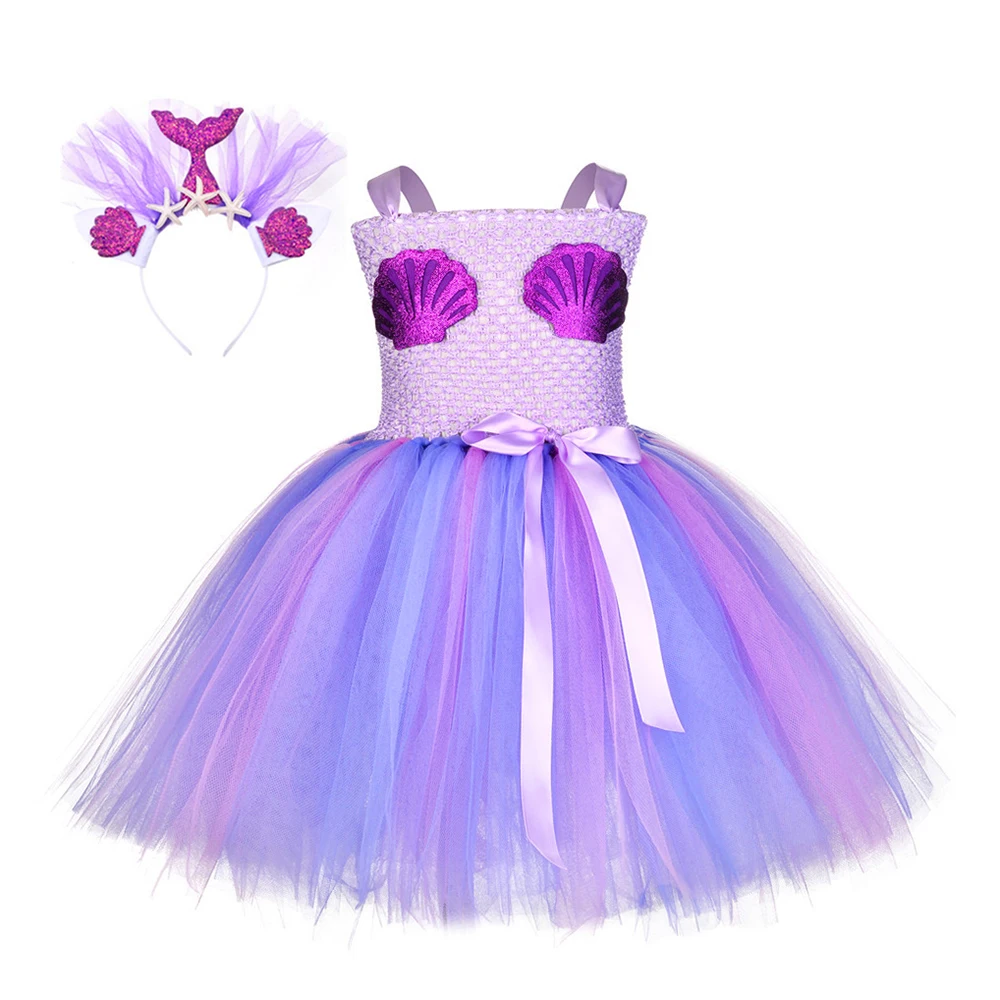 Юбка-пачка в стиле Русалочки для девочек, платье с повязкой на голову под морем, платье принцессы русалки, Детские вечерние костюмы на Хэллоуин, день рождения