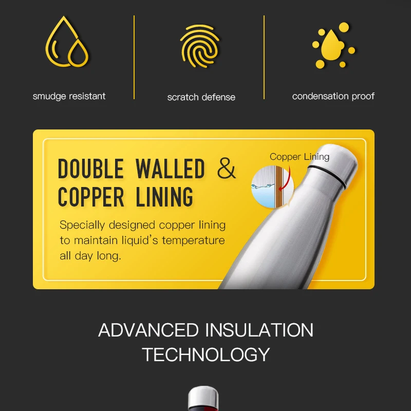 Спортивная бутылка для воды Изолированная: до свидания пот! Изоляция с двойными стенками делает железную флягу свободной от пота! Ваш напиток будет холодным до 24 часов, а горячий-до 12 часов.
