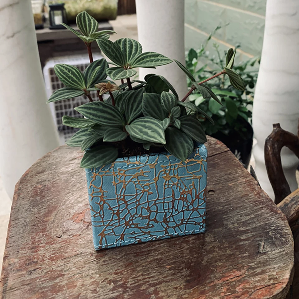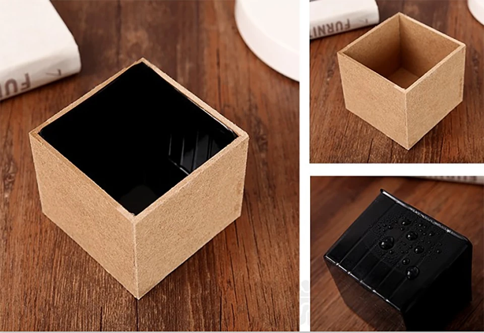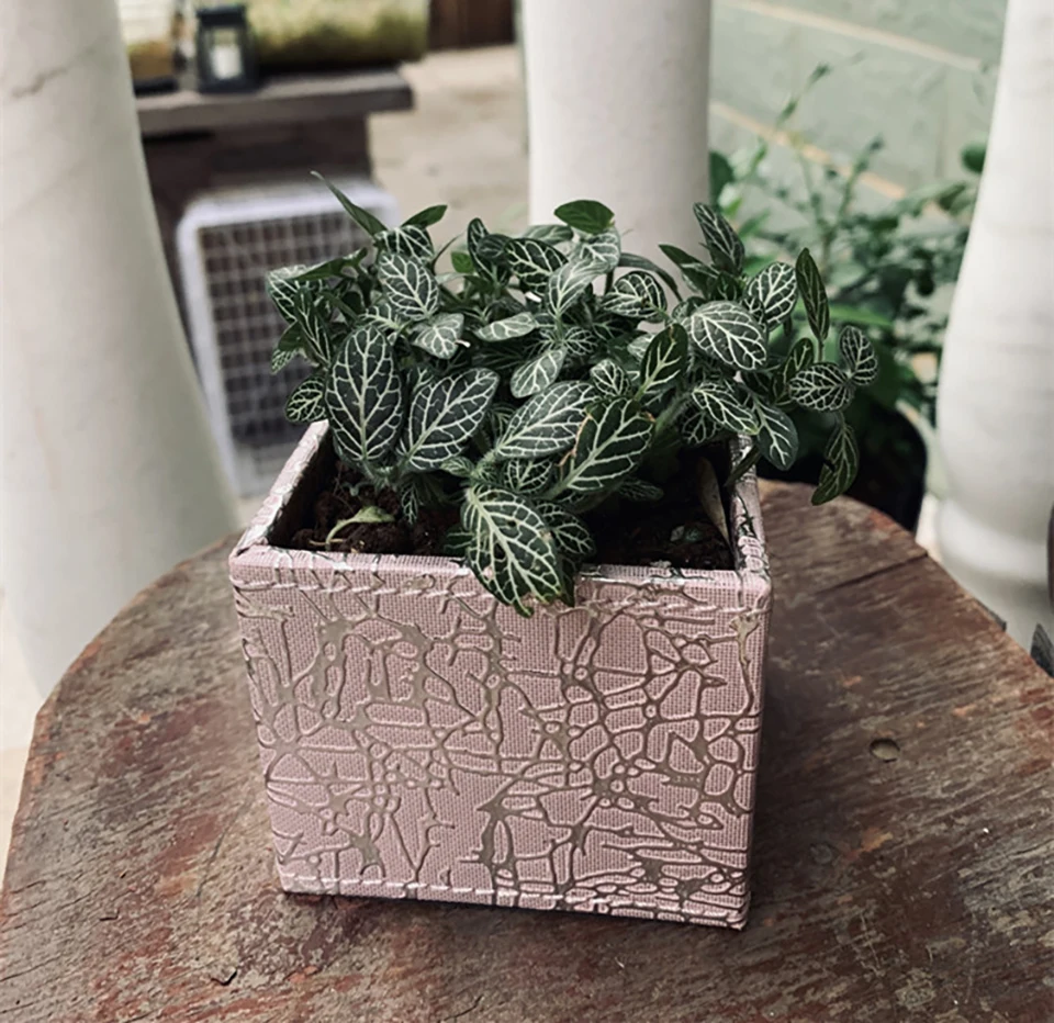 Наименование: резной кожаный цветочный горшок с золотым ободком Материал: водонепроницаемый пластиковый эмбрион + дерево + кожа Размеры: 8,3*8,3*7 см Цвет: черный/синий/розовый/золотистый