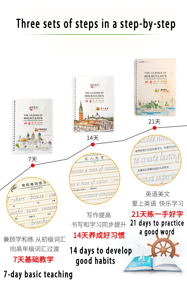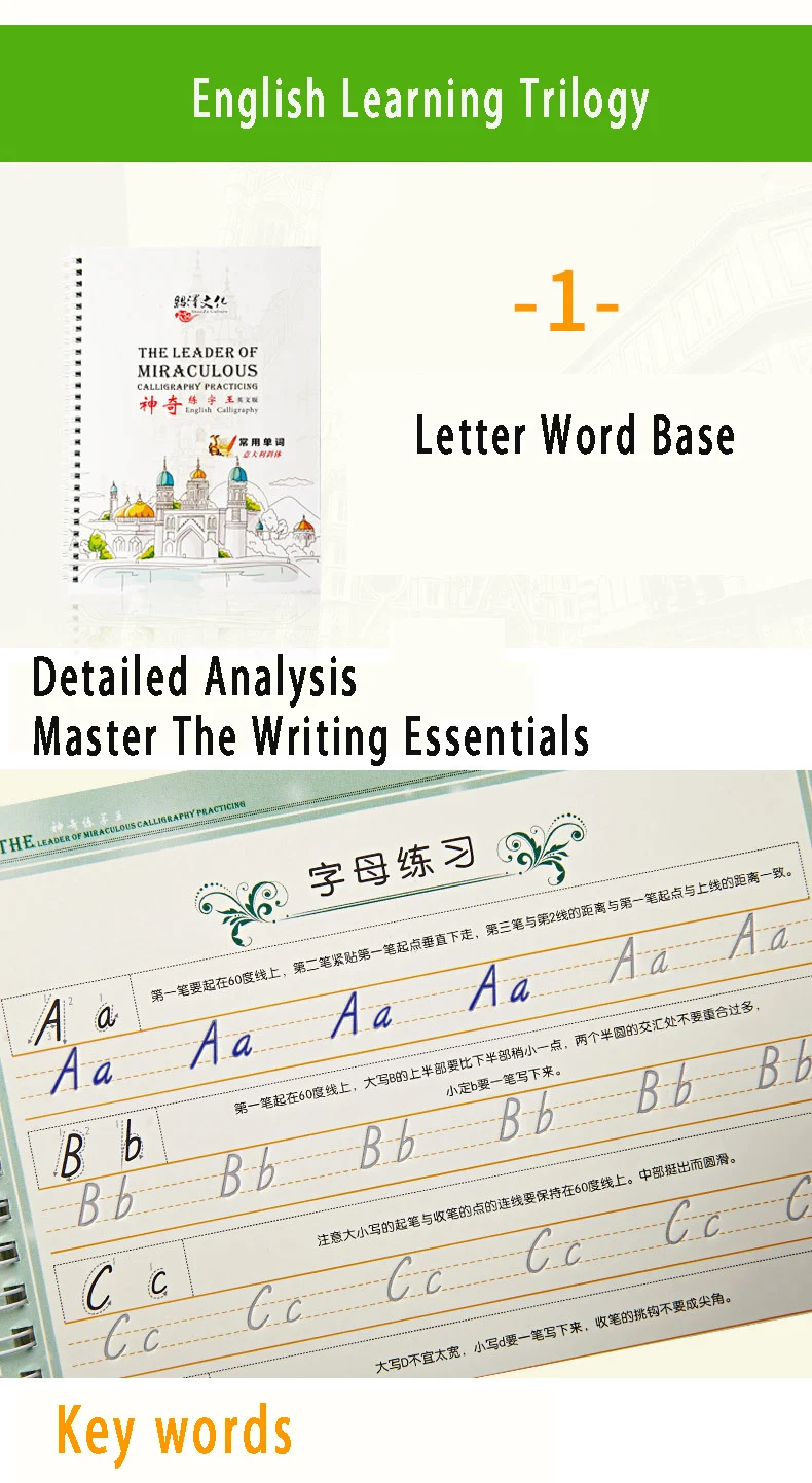 Китайская и английская жесткая ручка, английская авторская книга для взрослых детей, итальянская курьера, каллиграфия, копировальные книги, 3D паз, можно использовать повторно