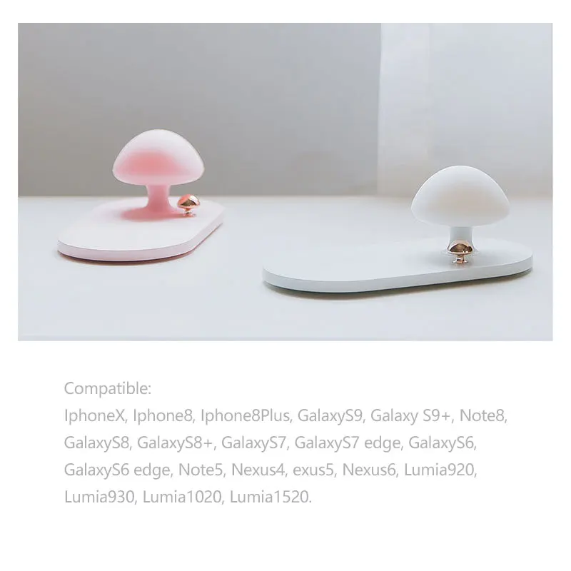 Особенности: Беспроводная зарядка + настольная лампа Вход: 5 (В) Выход: 5 (В) Тип: Беспроводной Зарядное устройство Зарядный ток: 2000 (мА) Интерфейс: USB Функция индикации: с функцией индикации Размер: 15,8*8*8,5 Вес: 105 грамм Цвет: белый, розовый Совместимость: IphoneX, Iphone8, Iphone8Plus, Galaxy ys9, Galaxy S9 +, Note8, Galaxy YS8, Galaxy YS8 +, Galaxy ys7, Galaxy ys7 edge, Galaxy ys6, Galaxy ys6 edge, Note5, Nexus4, exus5, Nexus6, lumia920, Lumia930, Lumia1020, Lumia1520. Беспроводная зарядка и Грибная настольная лампа, smart touch для открытия умной жизни, есть два режима освещения, сенсорная Регулировка световых эффектов. 2.0A Быстрая зарядка смарт-адаптер питания, низкая температура быстрая зарядка, удобно и безопасно. Поддержка 8 мм Высота зондирования, обычный Чехол для мобильного телефона все еще может использоваться нормально (металлические материалы будут повреждены).