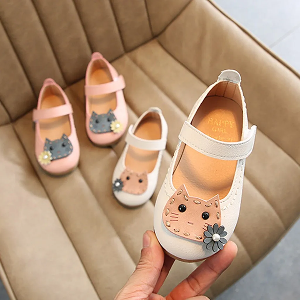 Повседневные сандалии для маленьких девочек с цветочным принтом и котом