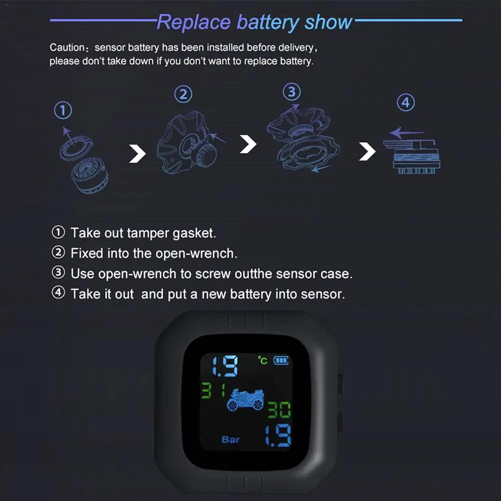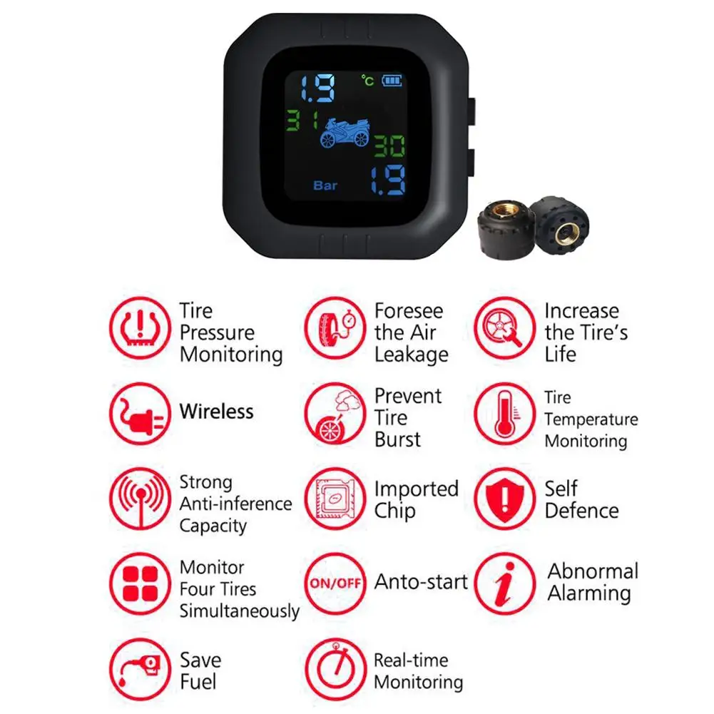 Система контроля давления в шинах мотоцикла TPMS супер Водонепроницаемая беспроводная высокоточная сигнализация давления в шинах