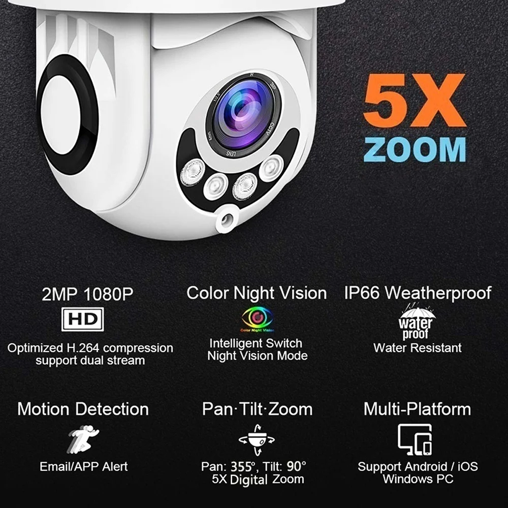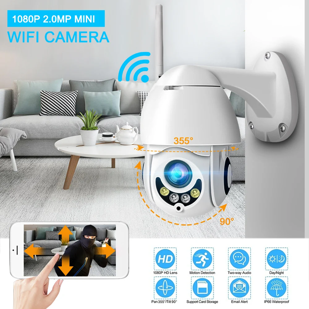 Головка камеры поворачивается с углом наклона 355°и 90 °. Вы можете контролировать приложение и получить широкий обзор на каждом дюйме вашего дома.