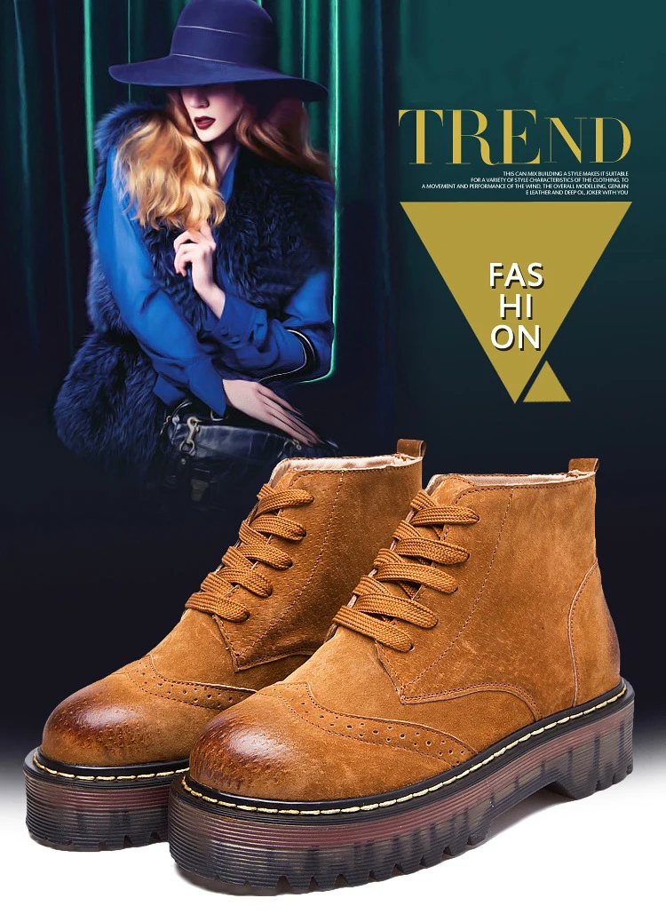 Мотоциклетные ботинки на плоской платформе; женская обувь; сезон осень-зима; зимние ботинки на меху с круглым носком; женские кожаные ботинки на шнуровке; женская обувь