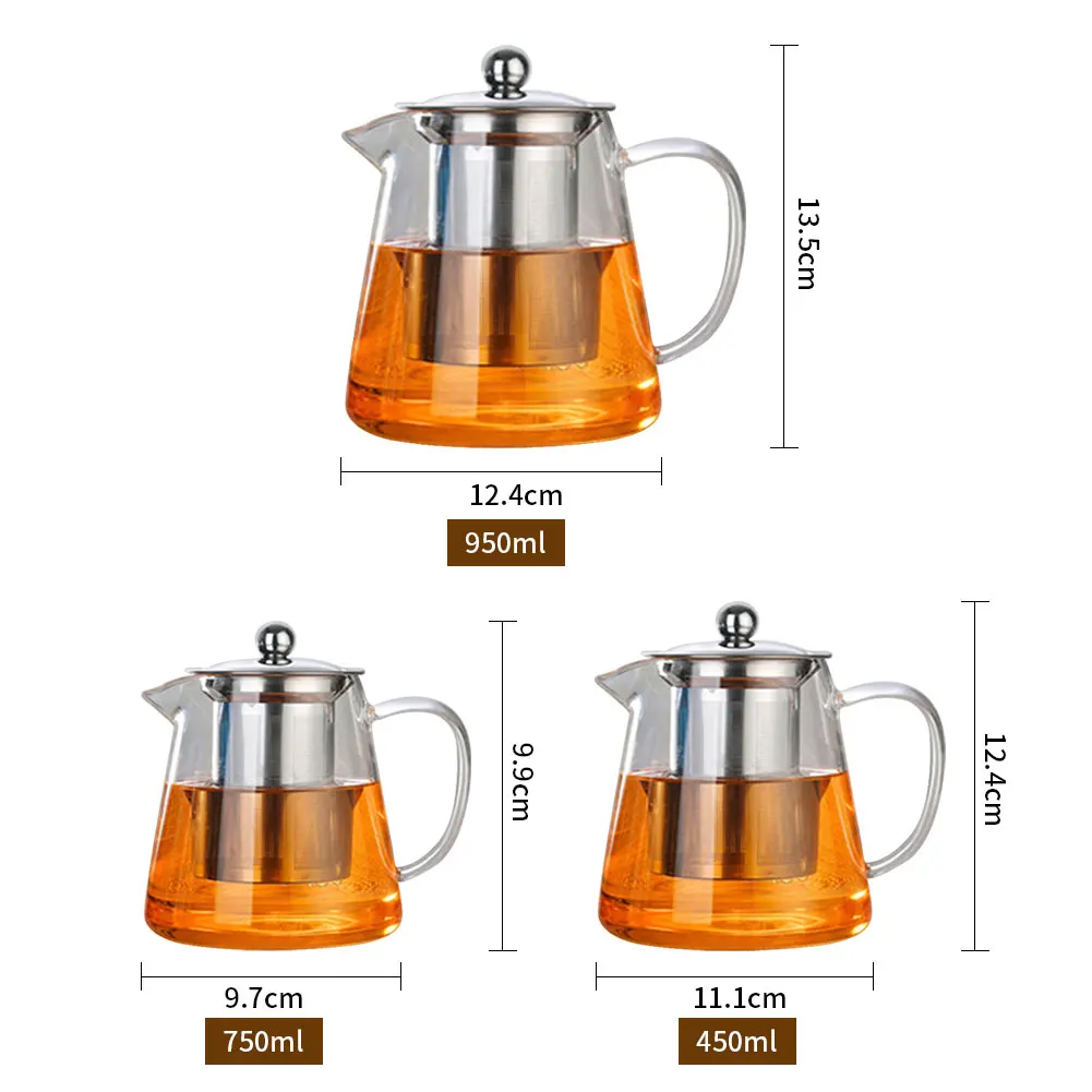 450/750/950 мл стеклянный чайный горшок высокотемпературный устойчивый сыпучих листьев цветок чай кофейник w/заварка крышка Ситечка