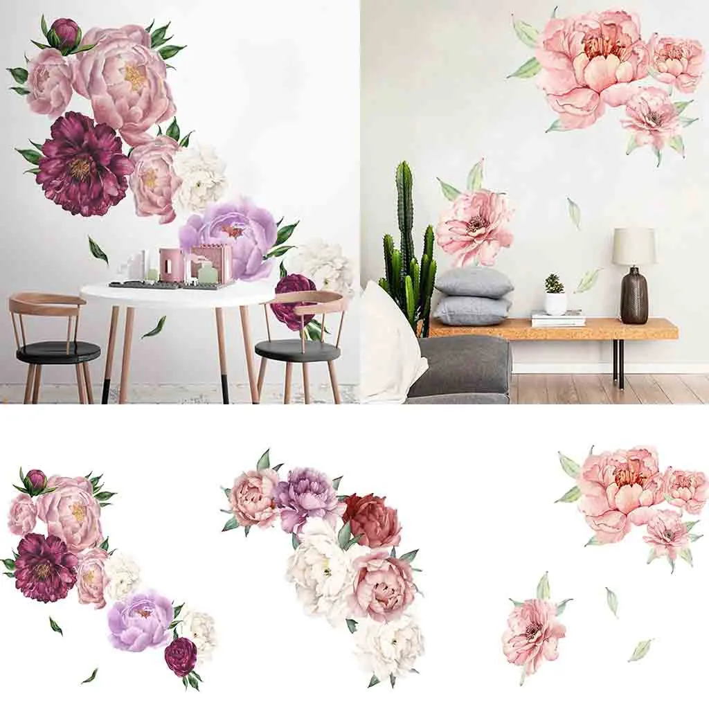 Наклейки на стену с пионами и розами, художественные наклейки для детской комнаты, домашний декор, подарок