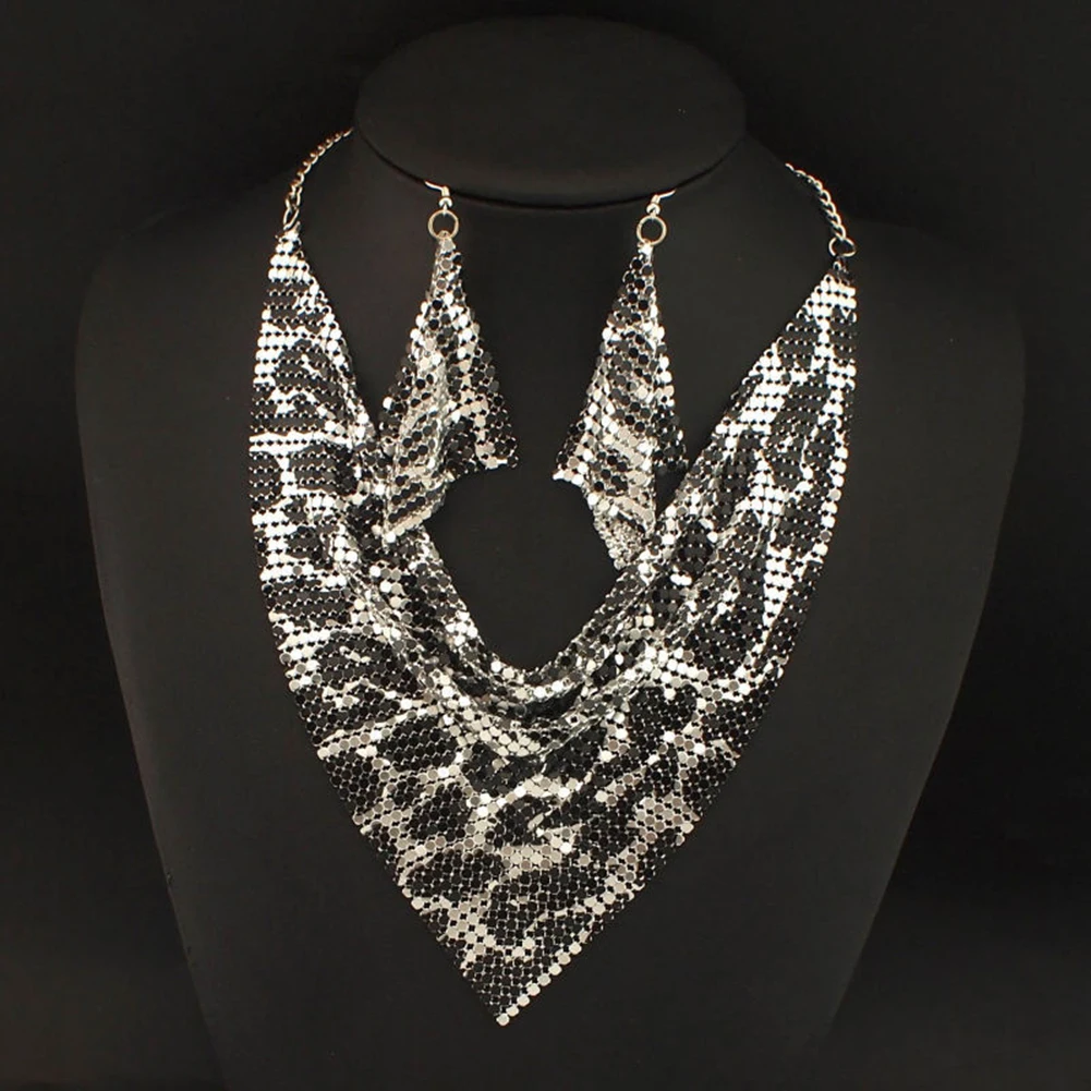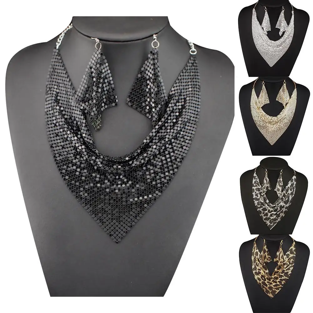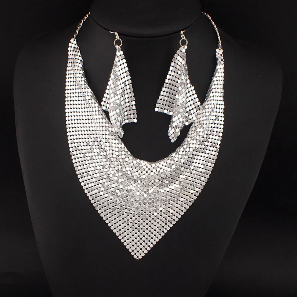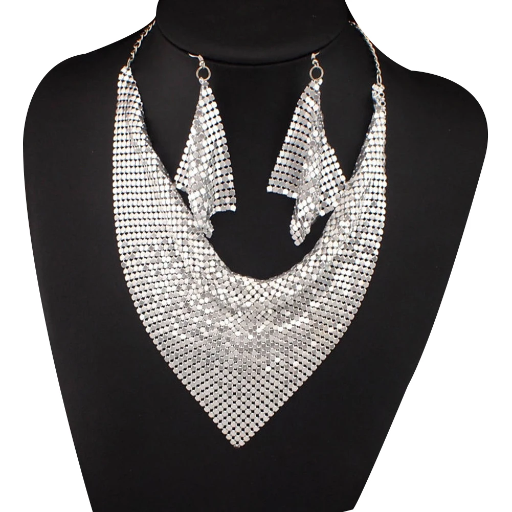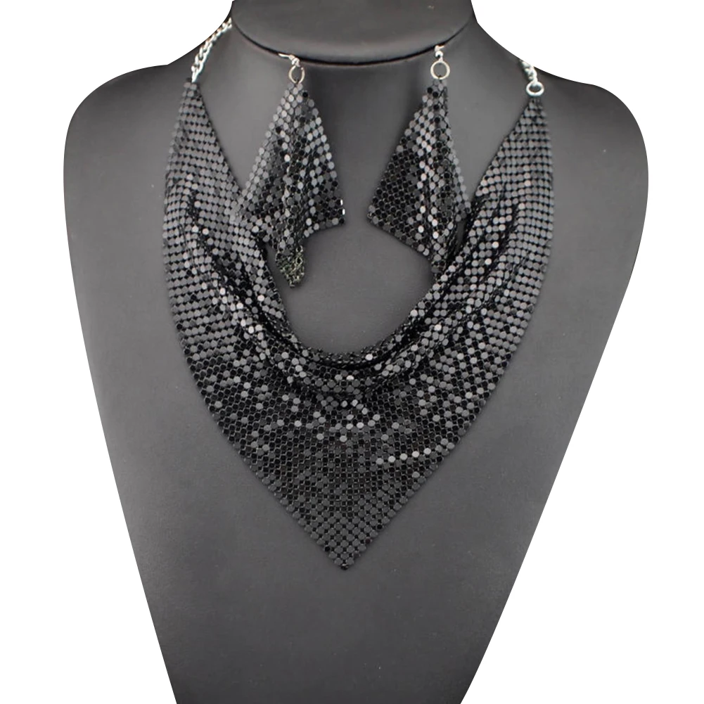 2 шт./компл. Модный женский треугольный шарф с блестками Шарм массивные Биб-серьги ожерелье серьги ювелирный набор ожерелье + серьги