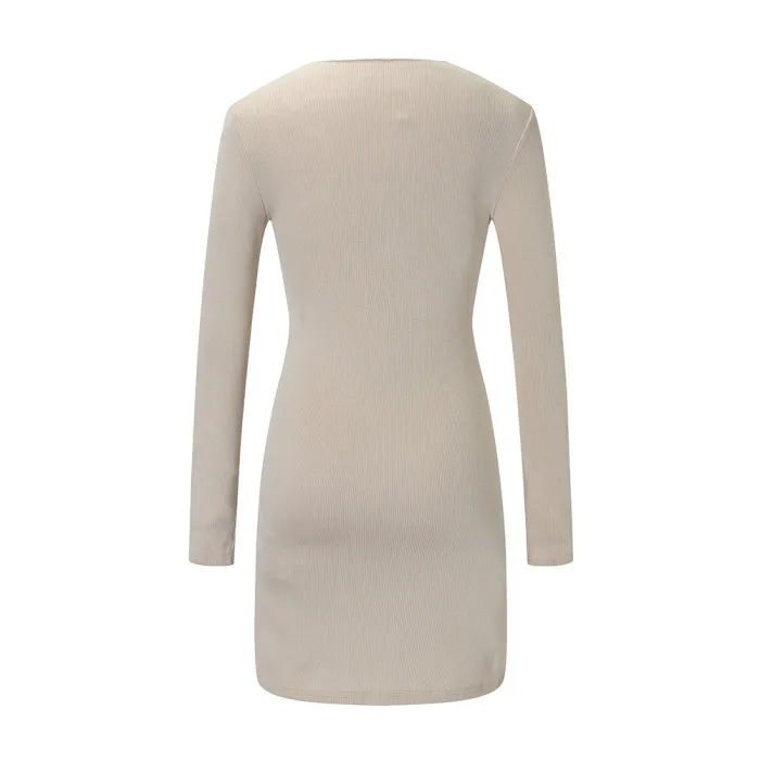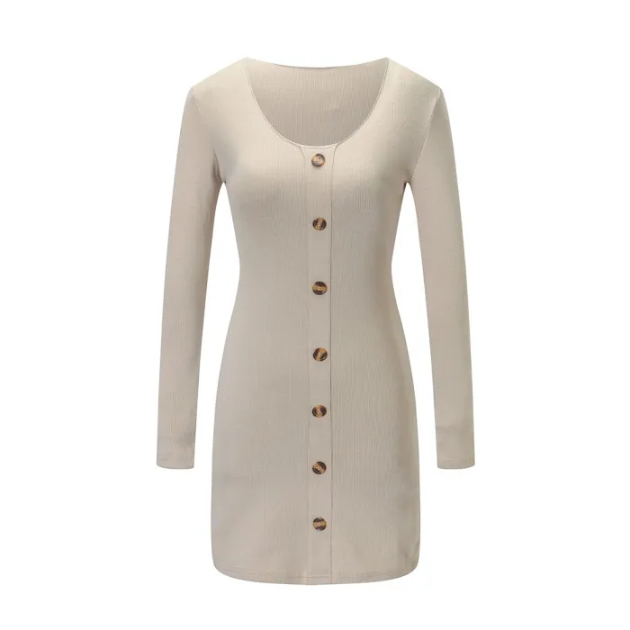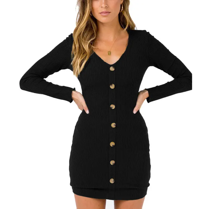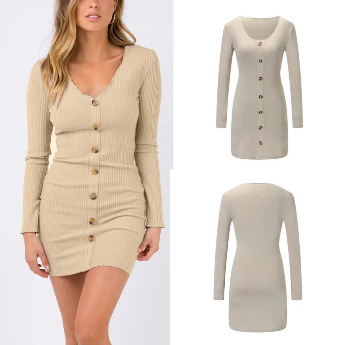 Женское облегающее платье на пуговицах с v-образным вырезом и длинными рукавами, летние пляжные вечерние платья FDC99