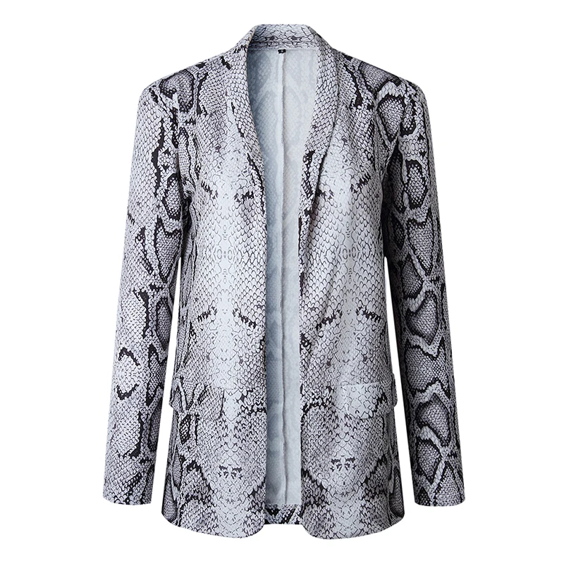 Весенний осенний костюм женский сексуальный леопардовый змеиный принт длинный рукав Блейзер офисный женский тонкий открытый стежок верхняя одежда