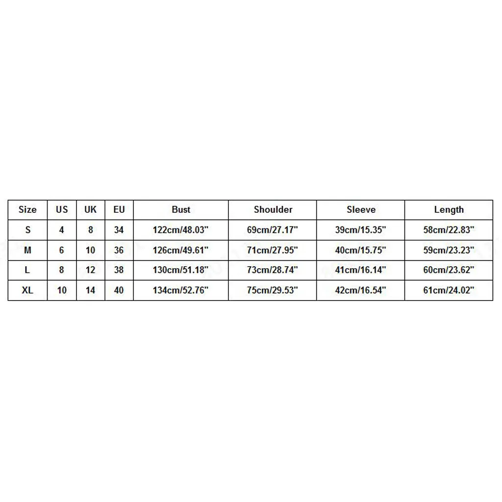 Размер США Великобритания ЕС Бюст Плечо Рукав Длина S 4 8 34 122 см/48,03'' 69 см/27,17'' 39 см/15,35'' 58 см/22,83'' М 6 10 36 126 см/49,61'' 71 см/27,95'' 40 см/15,75'' 59 см/23,23'' L 8 12 38 130 см/51,18'' 73 см/28,74'' 41 см/16,14'' 60 см/23,62'' XL 10 14 40 134 см/52,76'' 75 см/29,53'' 42 см/16,54'' 61 см/24,02''