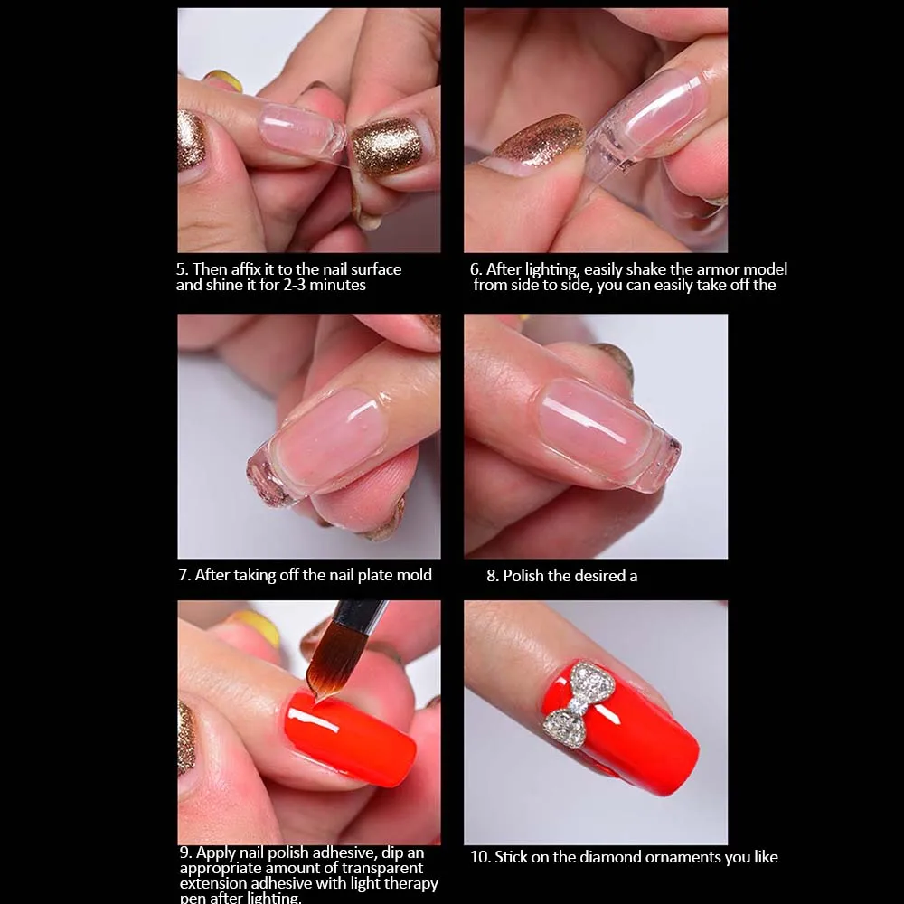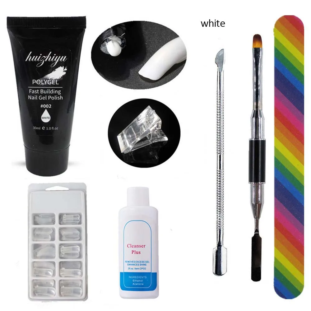 Новый Тип Быстрого удлинителя геля, без бумажного держателя, быстрого прототипирования, необходимо сотрудничать с держателем для ногтей. Полный набор геля для наращивания ногтей, удовлетворяющий ваши основные потребности. Содержит 6 шт. гель для наращивания ногтей, наконечник для ногтей (100 шт.), фиксирующий Зажим, УФ-гелевую ручку, толкатель для ногтей, Сушилка для ногтей и пилку для ногтей. Не легко пузыриться и сломать, простая работа. Безболезненно и очень легко снимается. Многоцветное сочетание для удовлетворения различных потребностей.