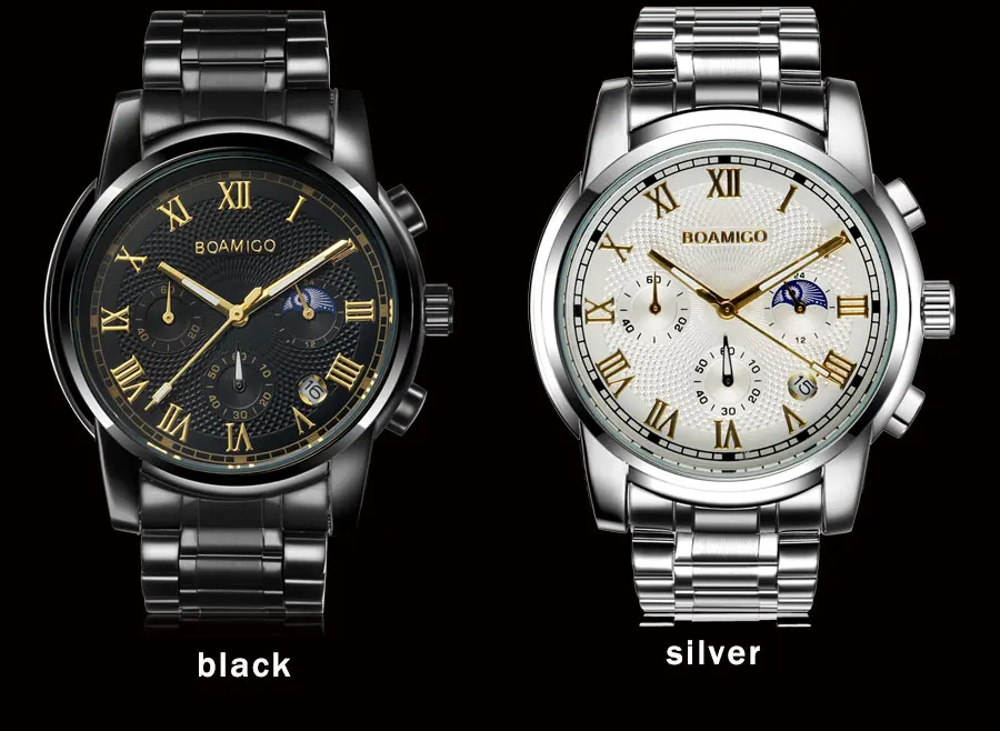 Бренд: BOAMIGO Дисплей: аналоговые кварцевые часы Стиль: Модный, Повседневный, деловой, роскошный, спортивный Особенности: Водонепроницаемость, Автоматическая Дата, хронограф, ударопрочность, плавание, Главные особенности: -100% новый с биркой и высоким качеством; (японский механизм) -Топ бренд класса люкс высокого качества дизайн циферблата, функция отображения даты; -3 АТМ/30 М Водонепроницаемость (поддержка холодного душа и плавания, не использовать часы под водой, не поддерживать горячую воду); -Качественный чехол из нержавеющей стали; -Качественный ремешок из нержавеющей стали; Спецификация приближения: -Чехол Диаметр: около 4,1 см -Чехол Толщина: около 1,0 см -Диапазон Ширина: Около 2,0 см -Общая длина: около 21 см