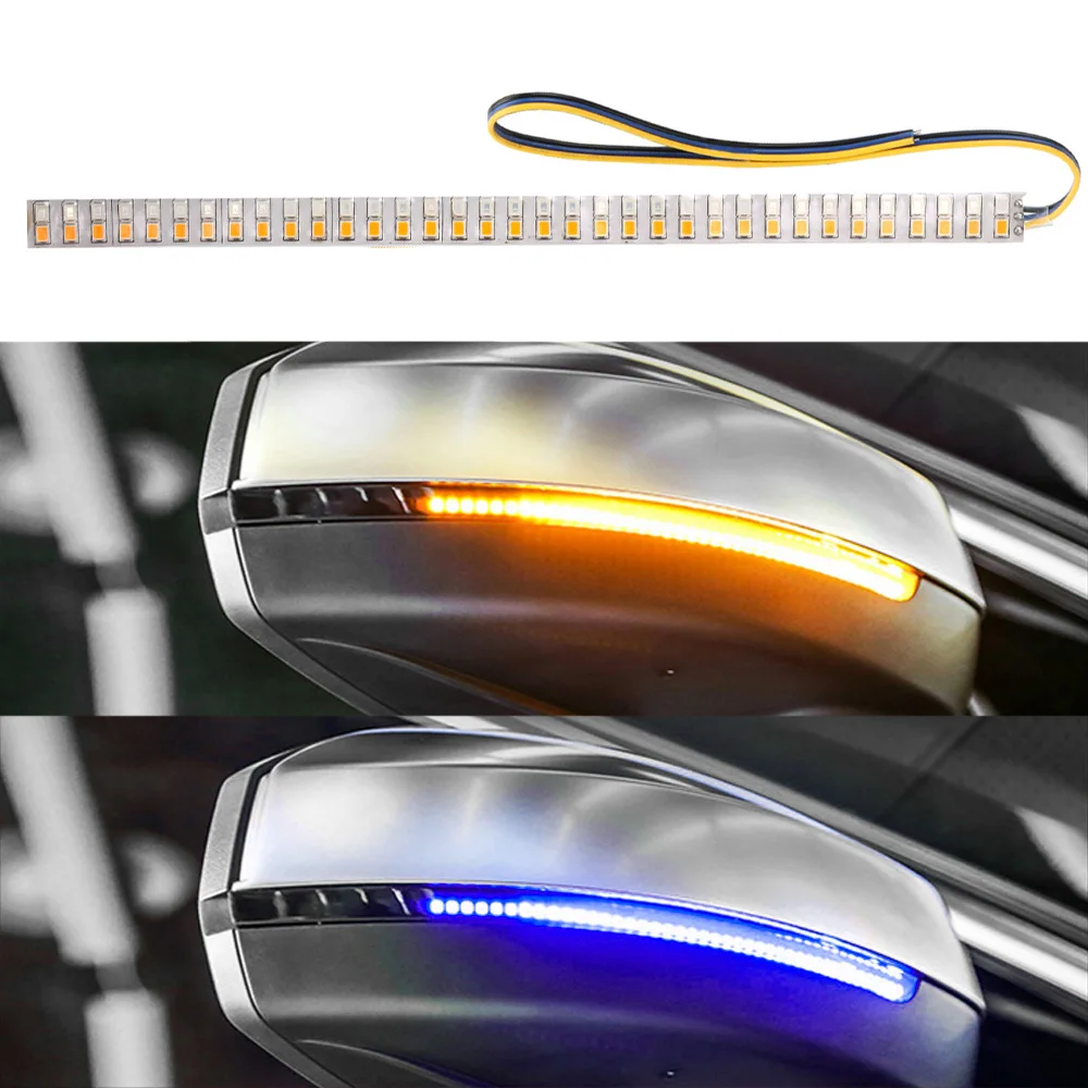 Особенности: Совершенно новый и высокое качество. Используйте мягкую монтажную плату, которая может быть установлена на радиановой поверхности зеркала заднего вида, в соответствии с установкой требуется соответствующий изгиб. Доступны поворотные огни или небольшие огни для использования. Ультра-тонкий, ультра-яркий светодиодный. Защита окружающей среды, низкое энергопотребление, высокая яркость, простая установка, различные модели. Рабочее напряжение: 12 В постоянного тока Мощность: 5 Вт Длина ленты: см. Изображение Светильник Цвет: синий/желтый 1 х Автомобильный светодиодный светильник