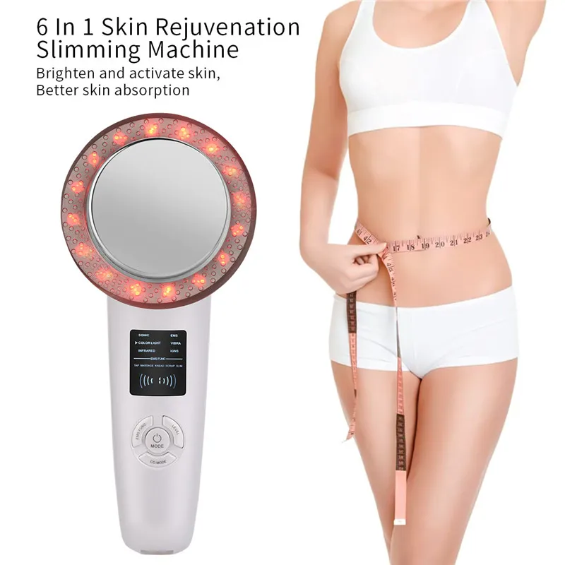 【 Функции 6 в 1 в сочетании с высокочастотной вибрацией, массажером EMS, синим светом, красным светом, импортом ионов и функцией экспорта ионов, устройство хорошо работает как для потери жира, так и для массажа тела.