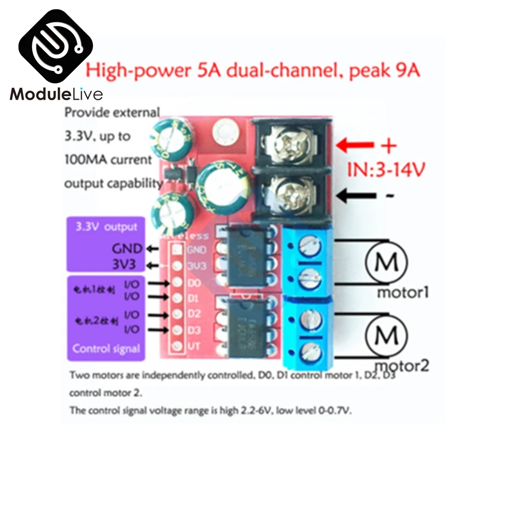 1. Двухсторонний H-мост мотор привода, может приводить в движение два двигателя постоянного тока или один 4-проводной двухфазный шаговый двигатель в одно и то же время;