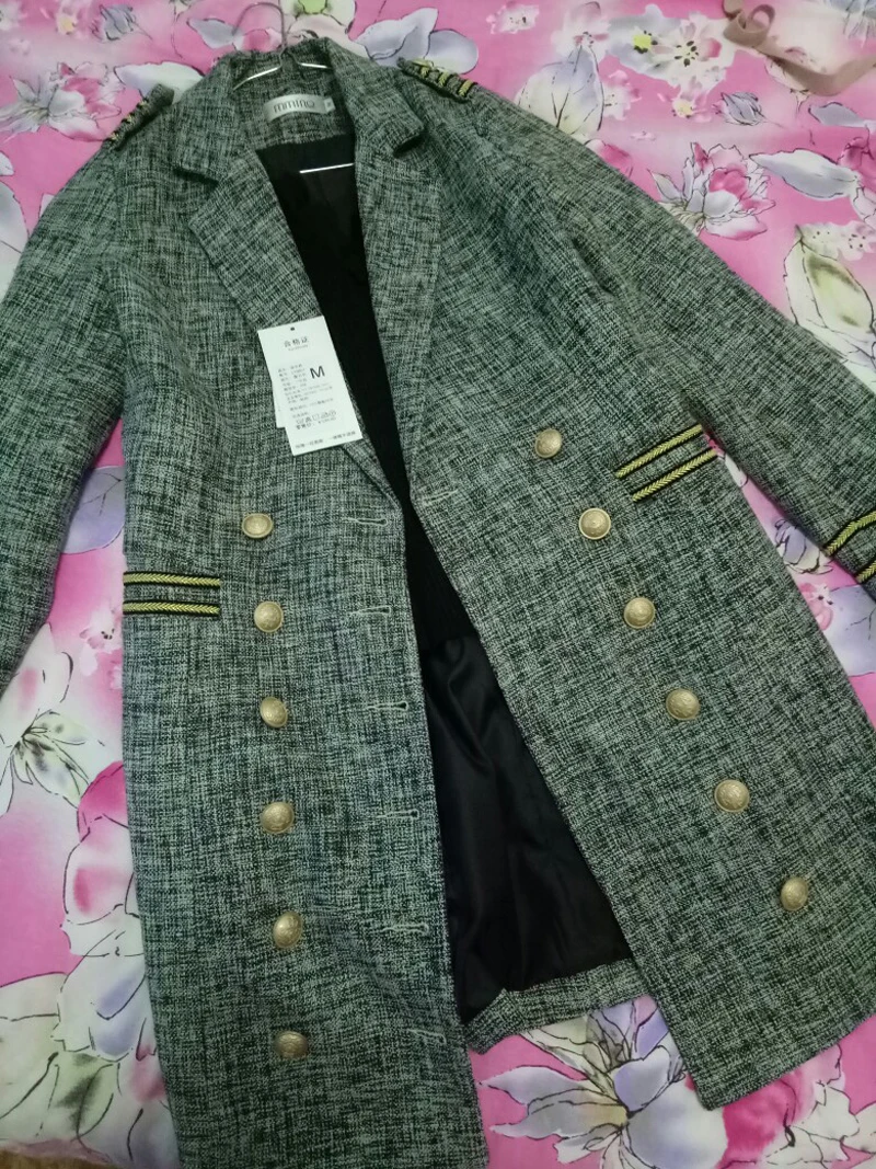 Женский двубортный пиджак, Серый Повседневный офисный пиджак с отложным воротником, подиумный пиджак для работы, осень 2019