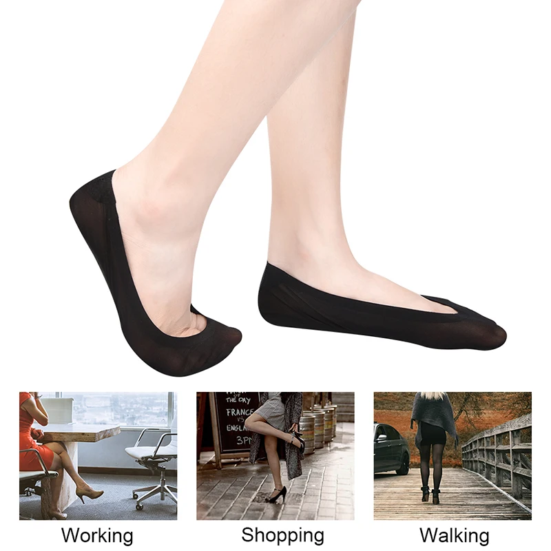 Детали: Материал: хлопок, спандекс, губка, силикон Цвет: 2 пары Черного и 2 пары цвета Размер: эластичный, подходит для ЕС (35-38) 21 см/8,26 дюйма * 8,3 см/3,26 дюйма (длина * ширина) Особенности: 1. Эта лодка изготовлена из хлопка, мягкого и удобного, дышащего и впитывающего влагу. 2. Внутренняя часть носков содержит носочки и подкладки для поддержки свода стопы. Подкладки для поддержки свода стопы изготовлены из силикона для плоскостопия, снимают боль при ходьбе и обладают амортизирующей функцией. Область передней части стопы содержит губки, имеет функцию массажа. 3. Пятка невидимых носков-лодочек имеет Противоскользящий силикон, предотвращающий падение носков. 4. Носок очень эластичный, идеально облегает стопу, не плотно прилегает к стопе и вызывает дискомфорт. 5. Край носков-лодочек-тонкая кружевная ткань, которая более пропускает воздух и сохраняет ноги сухими. Обратите внимание: Если есть какие-либо проблемы, когда вы получаете посылка, пожалуйста, свяжитесь с нами, прежде чем оставить какие-либо отзывы. Мы решим это для вас терпеливо. Посылка включает в себя: 4 пары носков-лодочек с супинатором