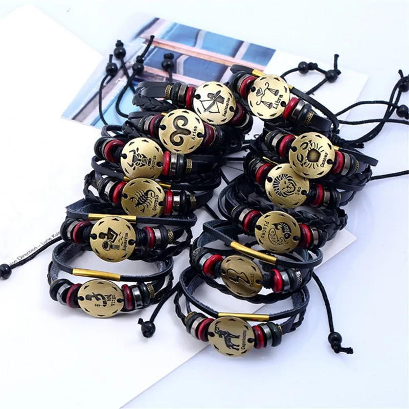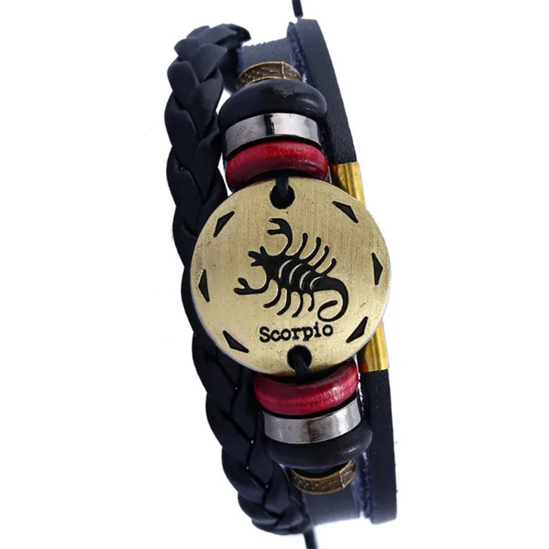 Винтаж 12 Созвездие ювелирных изделий Козерога Водолей, рыбы Овен, Телец Gemini Рак Leo Virgo весы браслет со знаком скорпиона