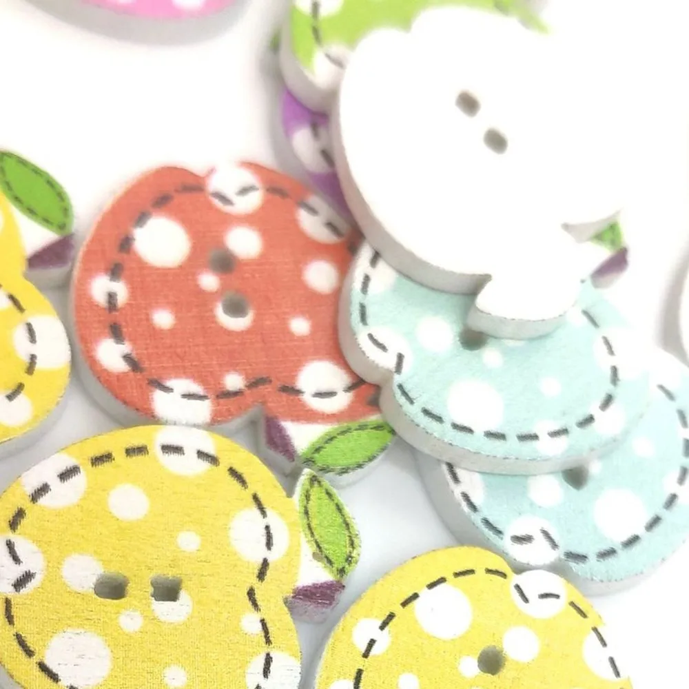 50 шт окрашенные маленькое яблоко деревянная пуговица s на белом фоне детская ручная деревянная пуговица мозаичные материалы