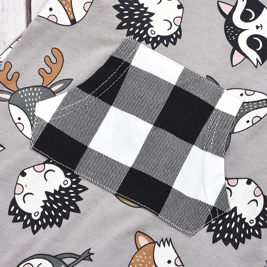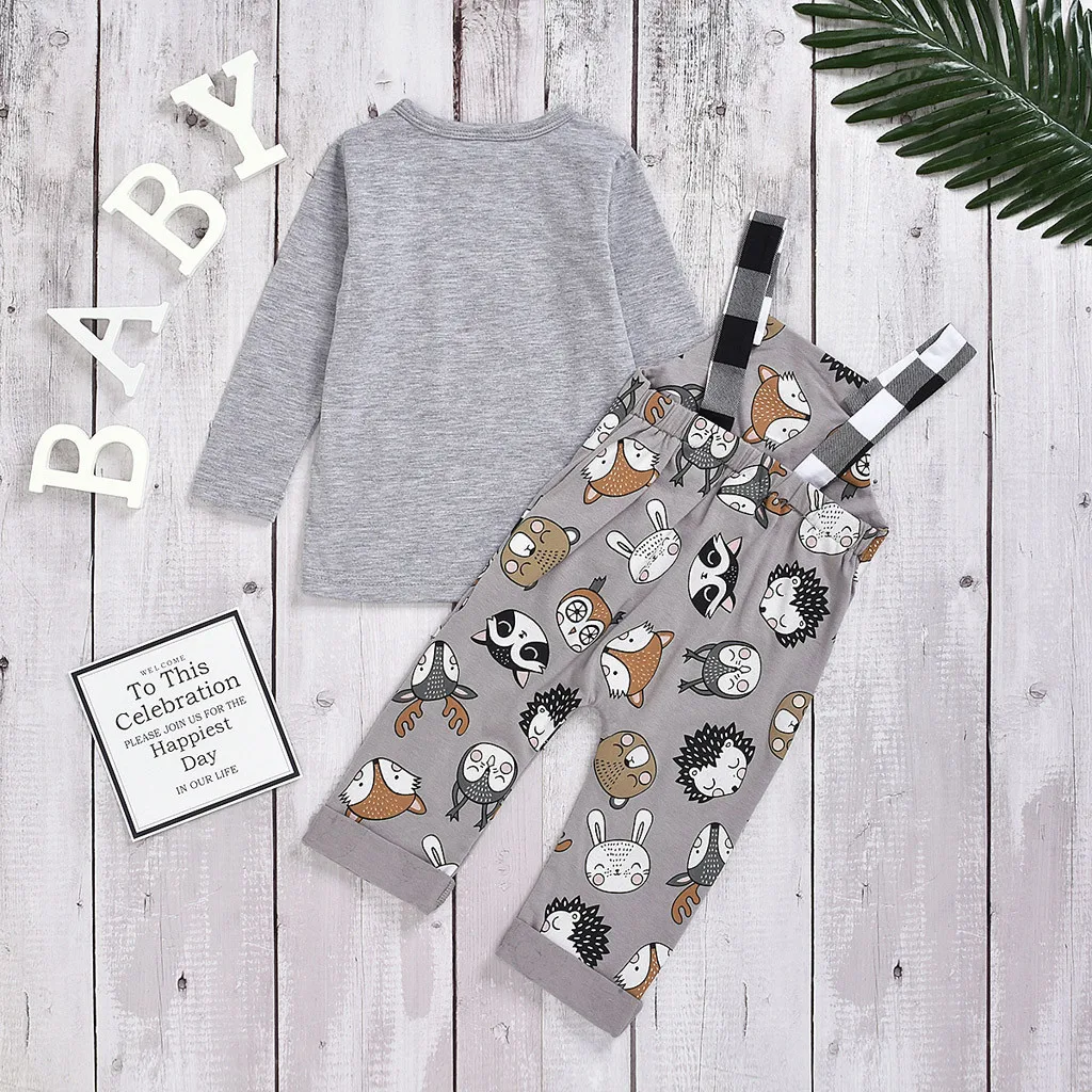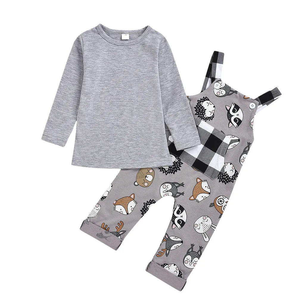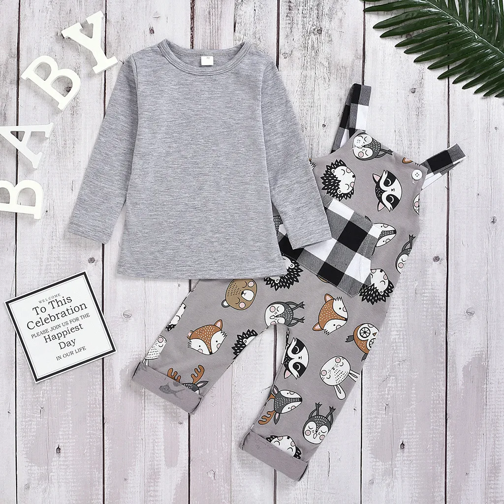 Комбинезон в клетку с рисунком для маленьких мальчиков и девочек + однотонные футболки, верхняя одежда